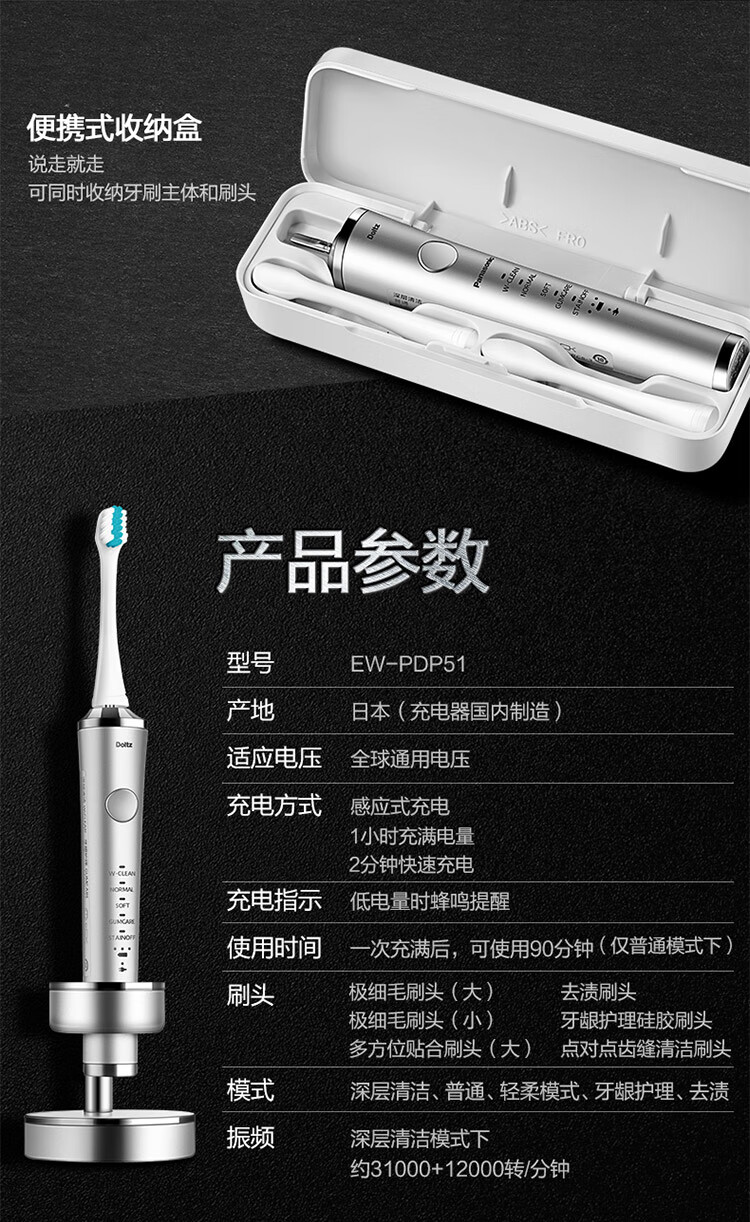 商品名称:松下(Panasonic)日本原装进口电动牙刷PDP51S(单位:台) 银色