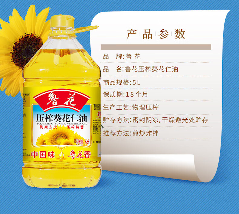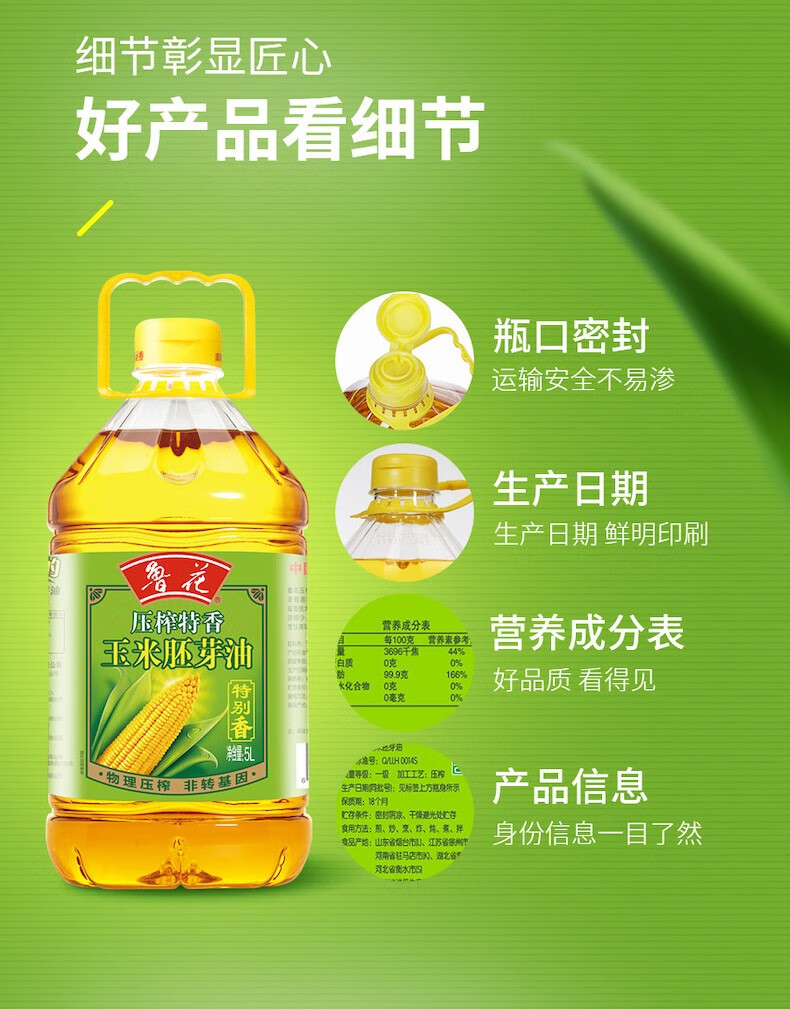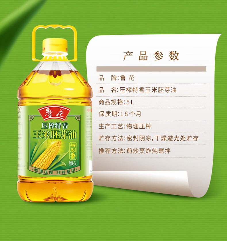 商品名称:鲁花 压榨玉米胚芽油5L+压榨葵花仁油5L 玉米胚芽油 葵花仁油2桶 CP005056+CP003672