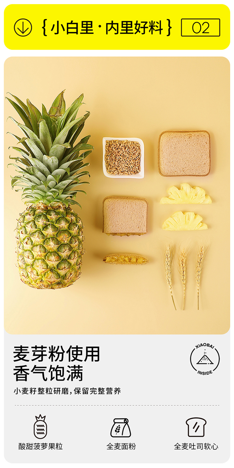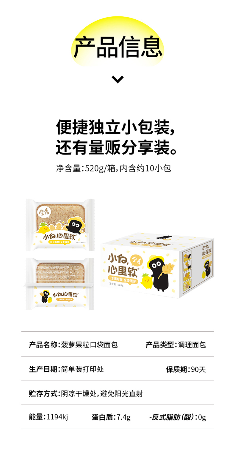 商品名称:小白心里软 全麦菠萝口袋面包520g(单位:盒) 本白色