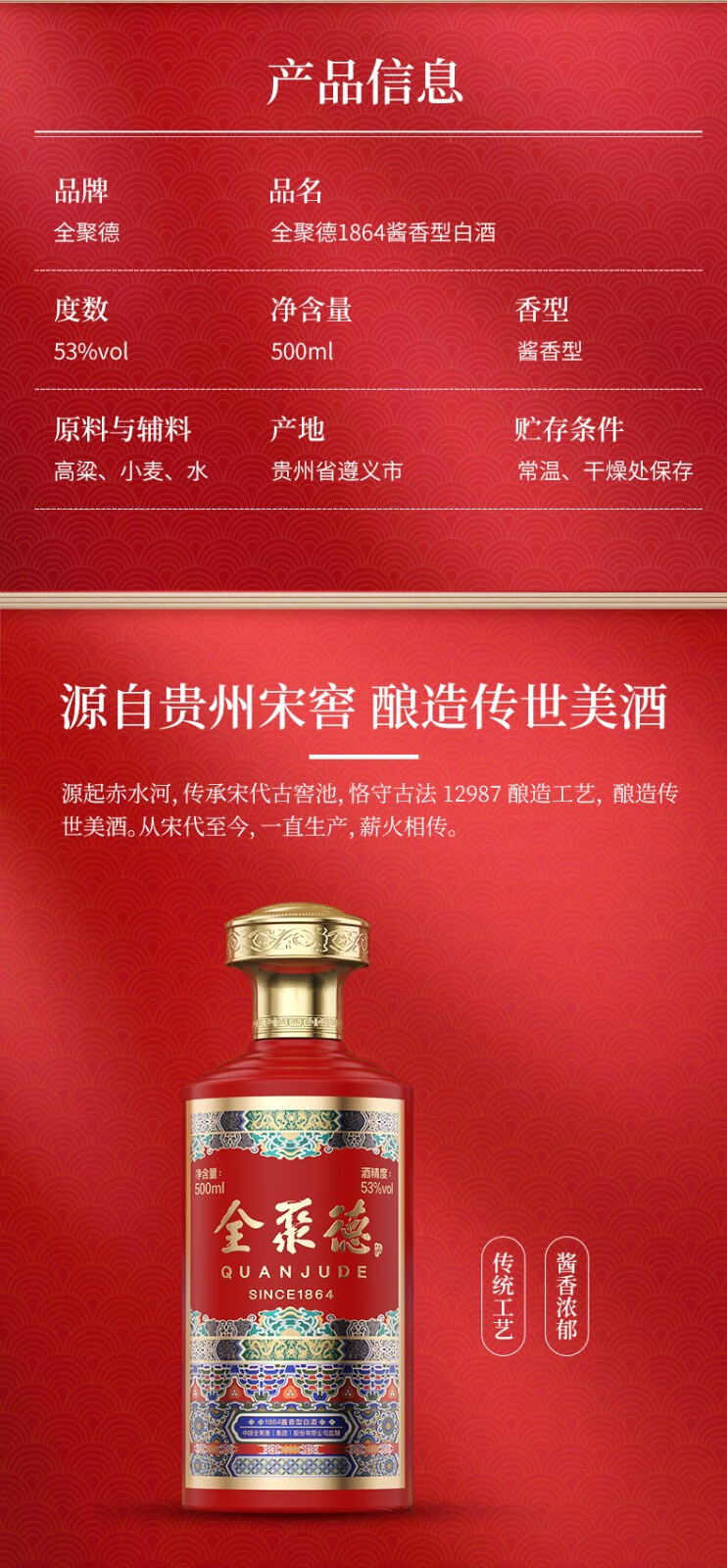 商品名称:全聚德白酒1864传奇酱香500ml 酱香型53度白酒高端酒酱酒礼盒1瓶 1864传奇酱香500ml