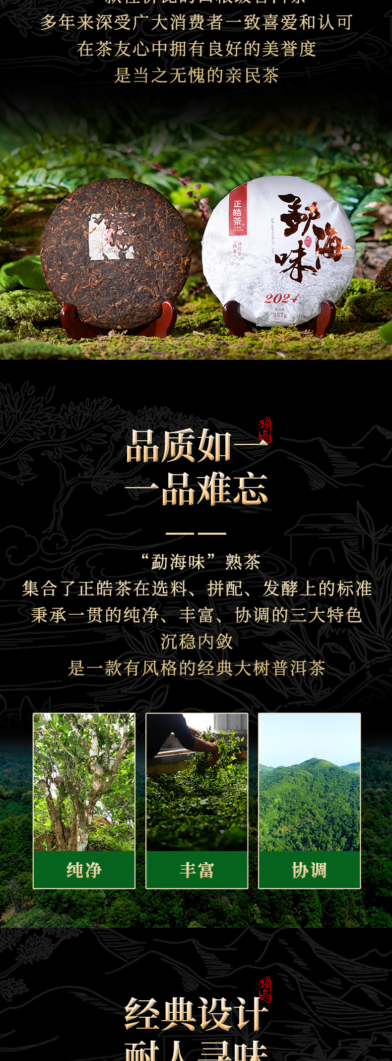 商品名称:正皓茶 勐海味2023 获奖系列普洱茶熟茶2022年熟普特级 饼茶纸盒装357g 单位:盒 浅灰色
