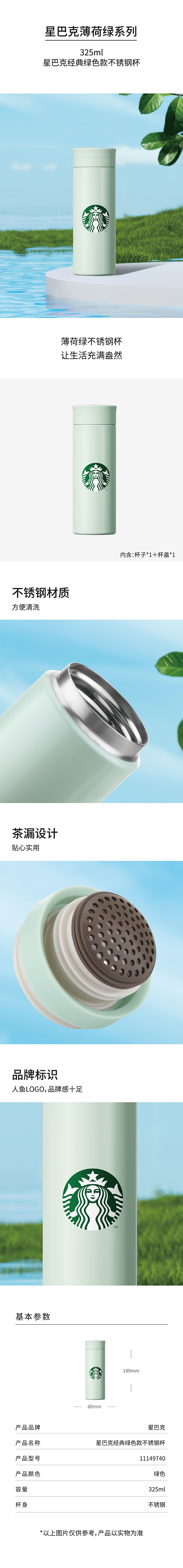 商品名称: 星巴克(Starbucks) 11149740 325mL 不锈钢保温杯 经典绿色(单位:个)