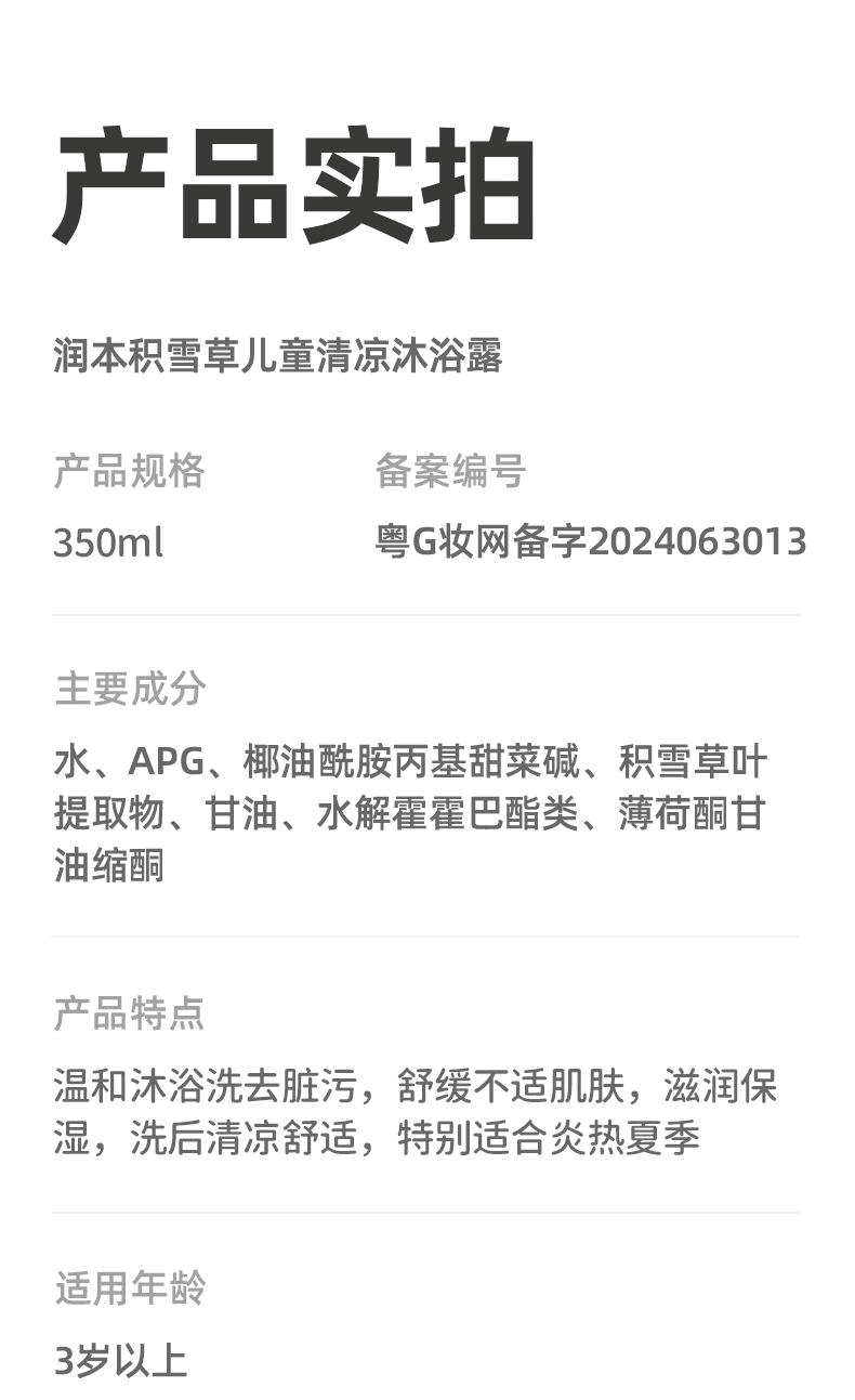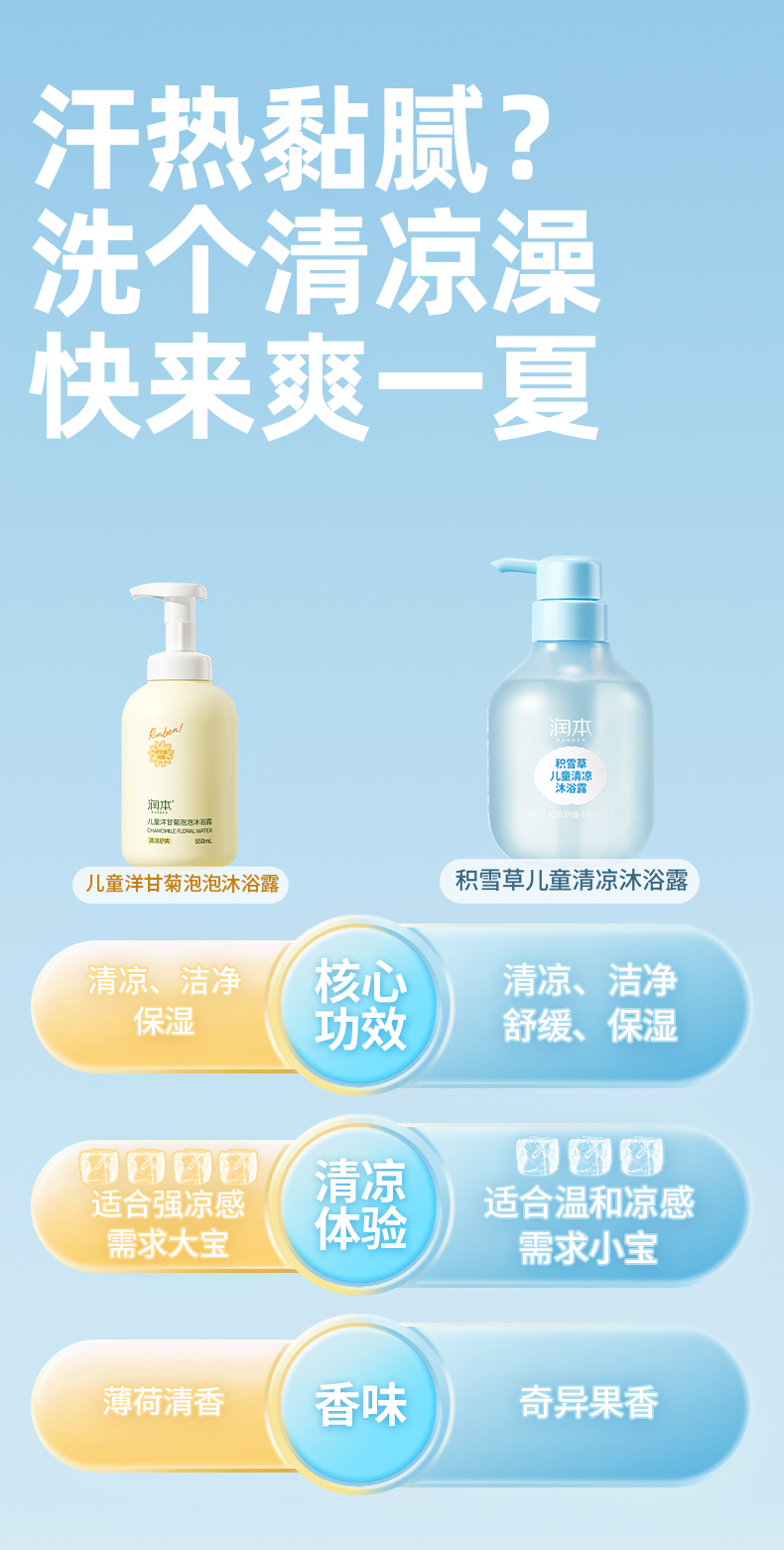 商品名称:润本积雪草儿童清凉沐浴露350ml(单位:瓶) 天蓝色