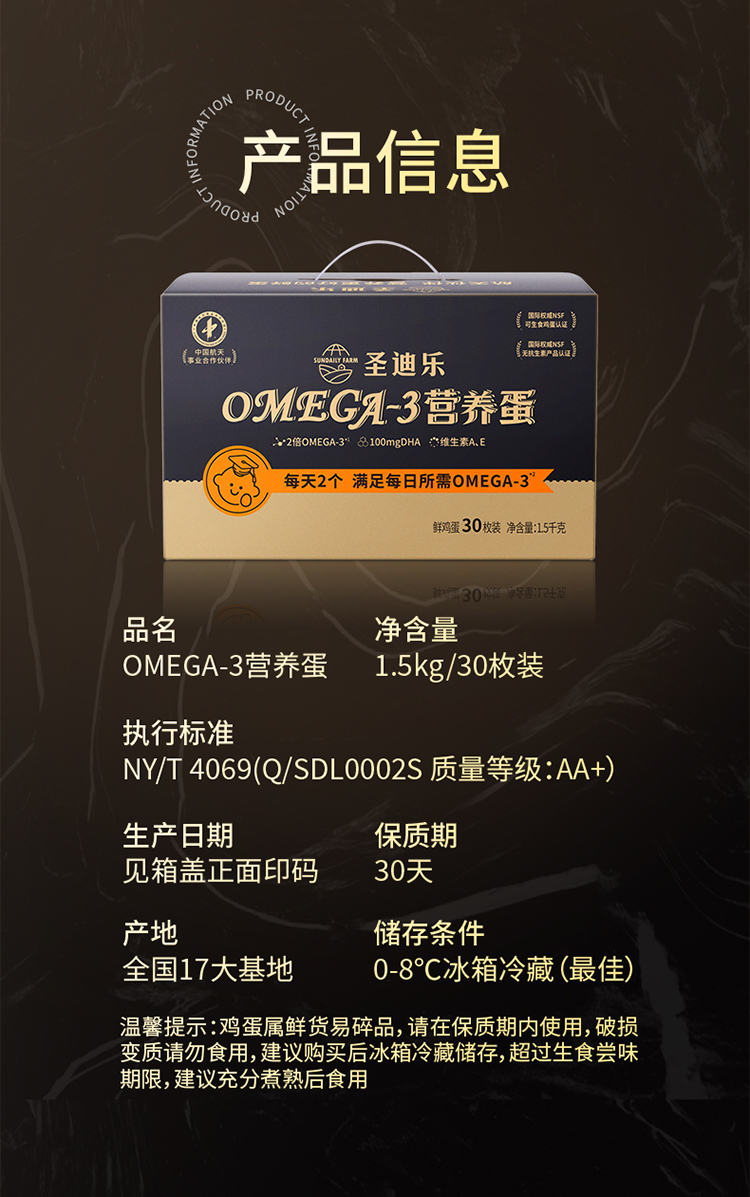商品名称:圣迪乐OMEGA-3蛋30枚/盒 (单位:盒) 黑色