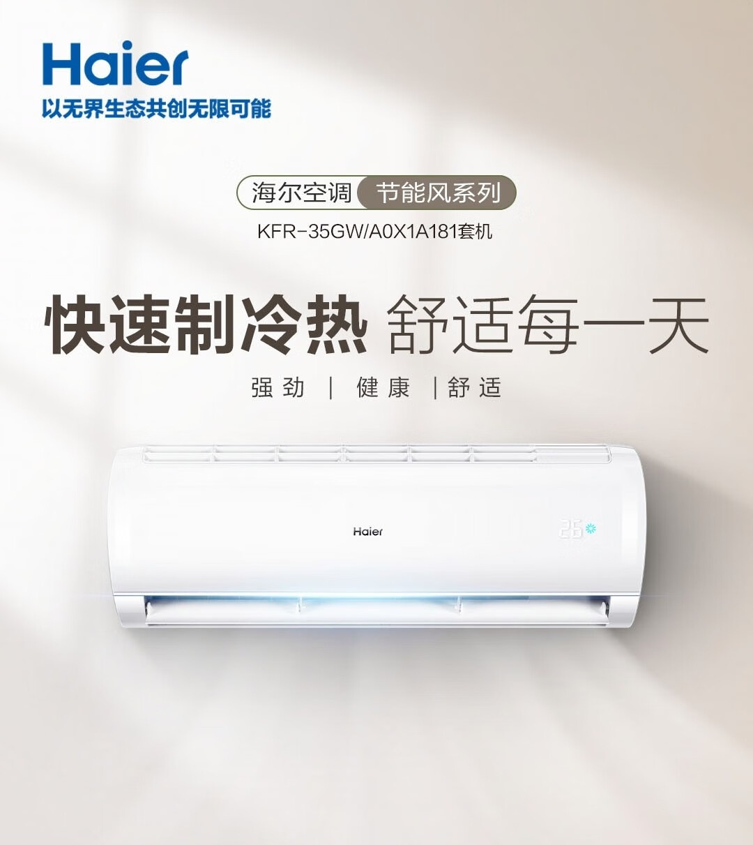 商品名称:海尔1.5匹 一级能效 变频冷暖 壁挂式空调 KFR-35GW/A0X1A181(单位:台) 本白色