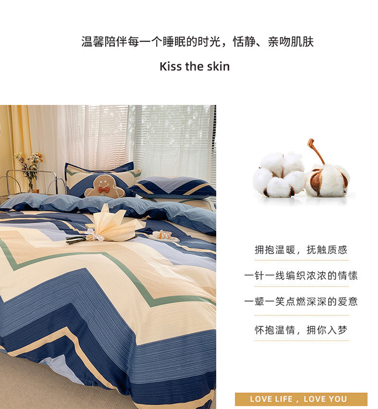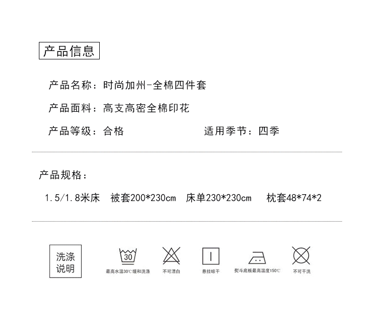 商品名称:因为+所以 BSA-009 时尚加州-全棉四件套(单位:套) 混色