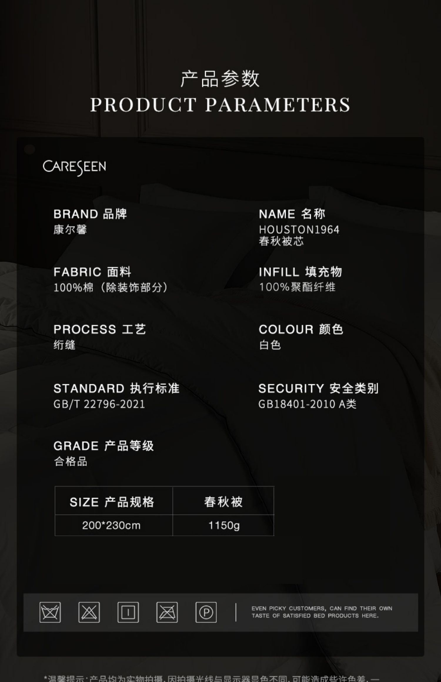 商品名称:康尔馨Houston1964希尔顿酒店A类抗菌锁温(单位:条) 白色 200*230CM春秋被