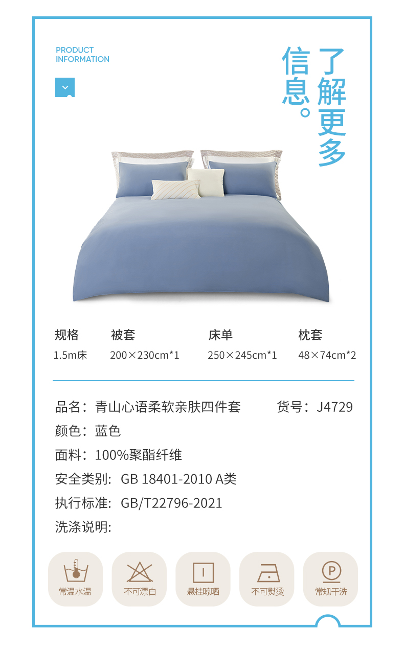 商品名称:洁玉 J4729 青山心语柔软亲肤四件套-蓝(单位:套) 蓝色