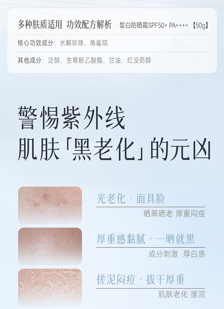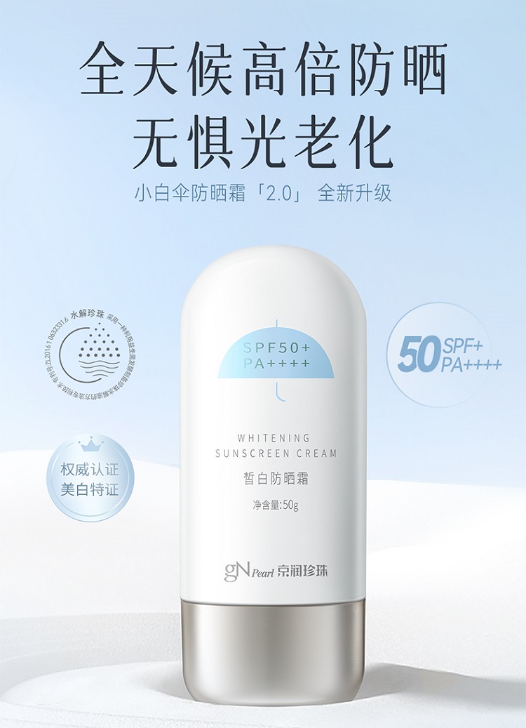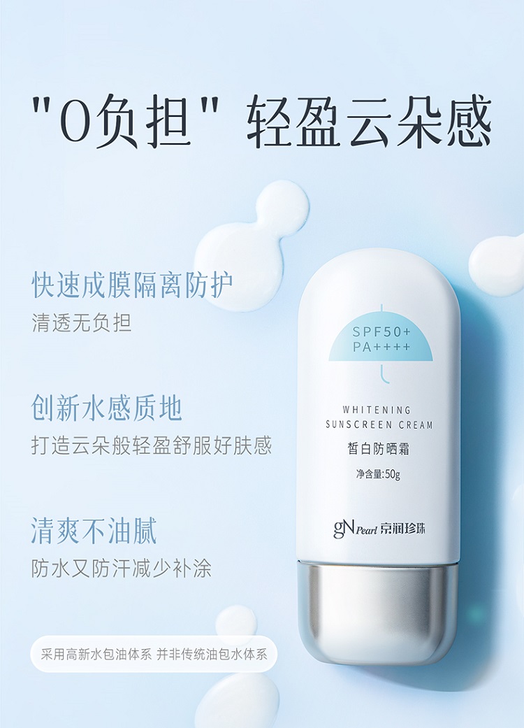 商品名称:京润珍珠(gNPearl)美白高倍防晒乳液SPF50+/PA++++轻薄养肤不油腻(单位:瓶) 皙白防晒霜50g
