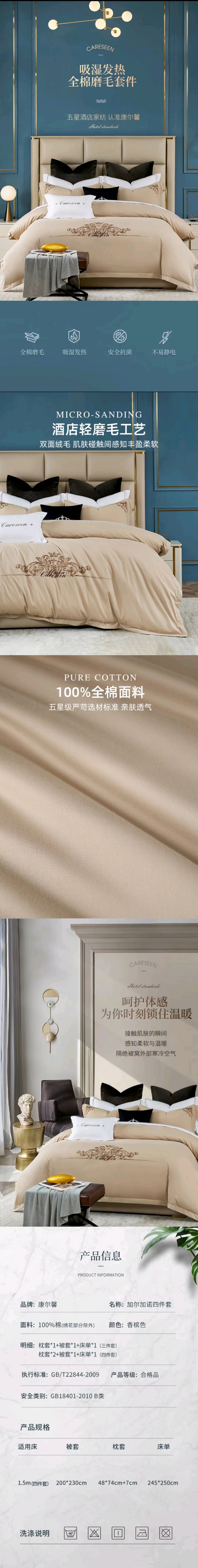 商品名称:康尔馨纯棉轻奢高级感加尔加诺四件套200*230CM(单位:套) 香槟色
