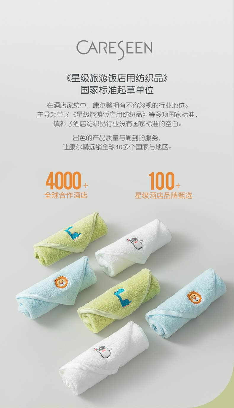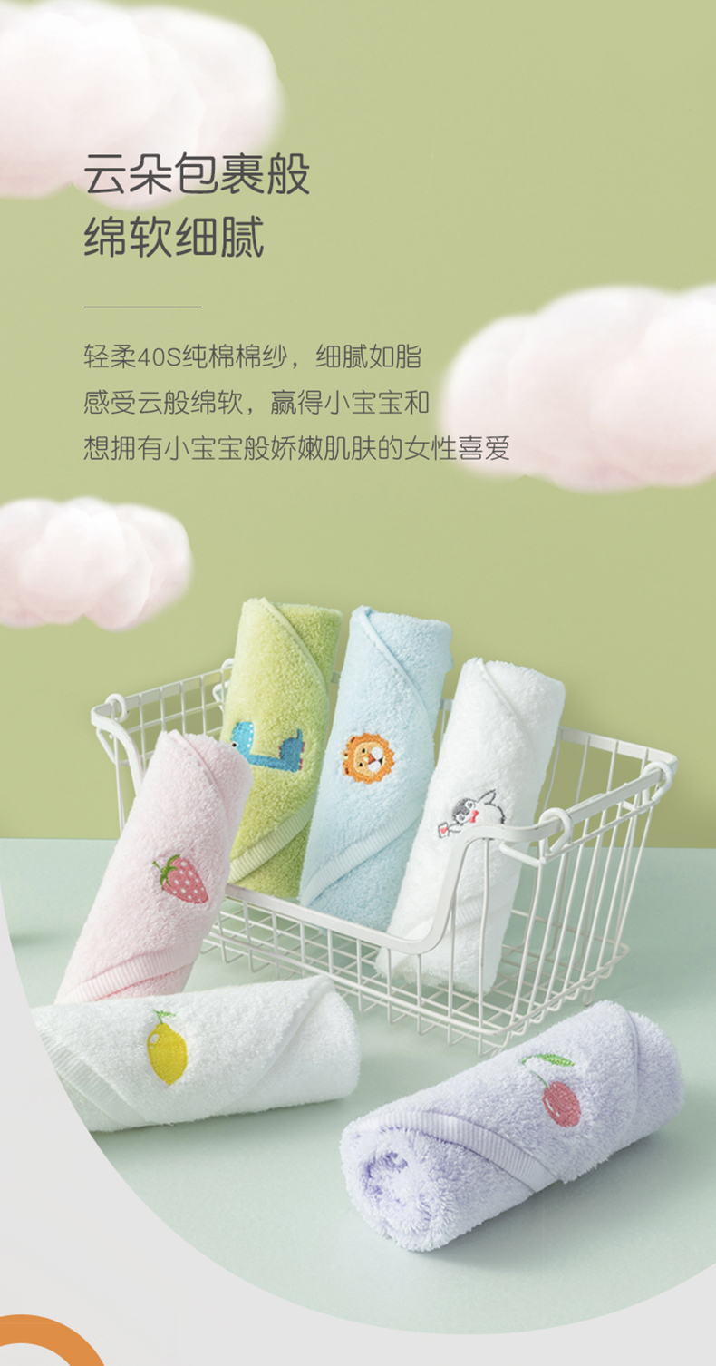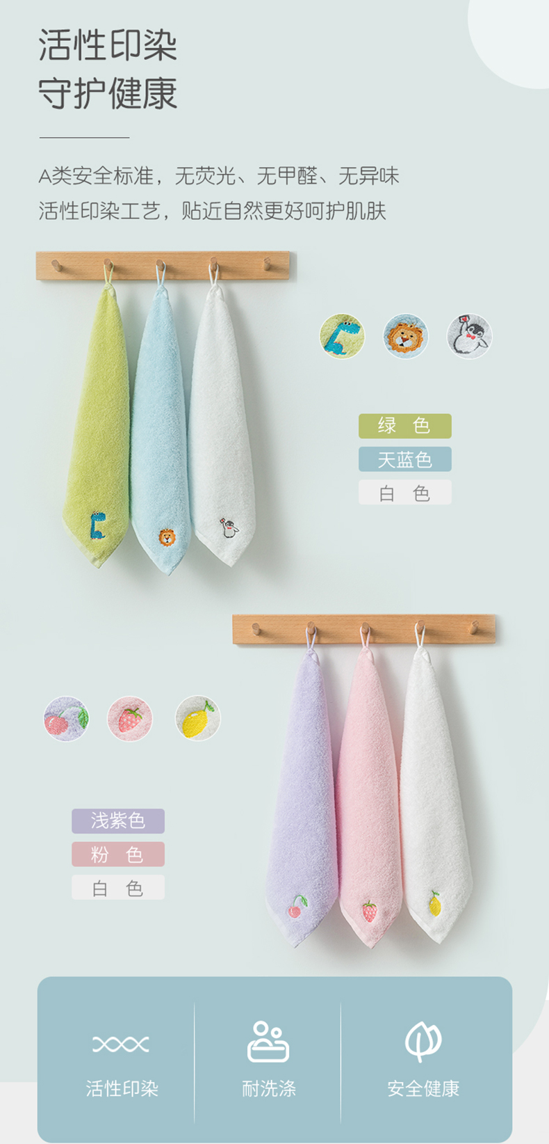商品名称:康尔馨萌趣棉花糖方巾动物系列3条袋装(单位:袋)天蓝色+绿色+ 白色