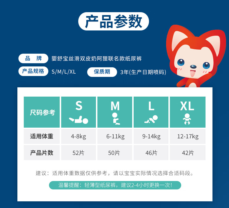 商品名称:婴舒宝 阿狸超薄环抱裤XL码 42片DH02-XL42(单位:提) 单色