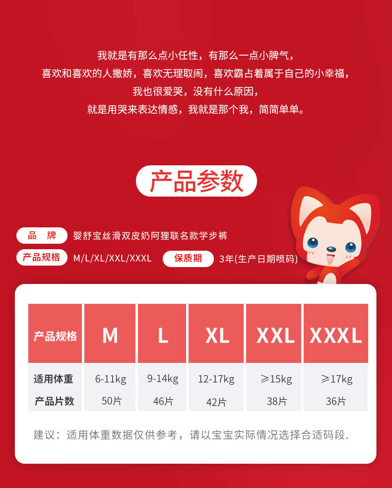 商品名称:婴舒宝 阿狸超薄学步裤M码 50片DU02-M50(单位:提) 单色
