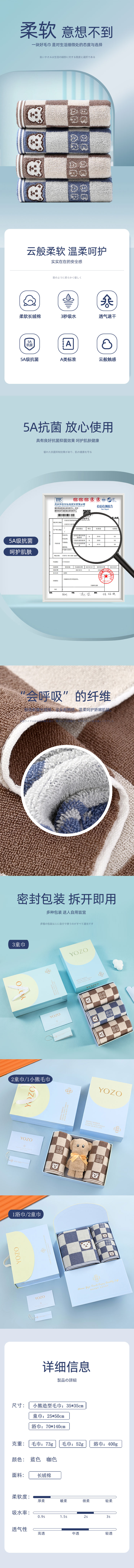 商品名称:优竹世家YOZO新疆长绒棉5A抗菌A类毛巾2条精梳绒小熊毛巾1条组合套装--本色熊-2 混色