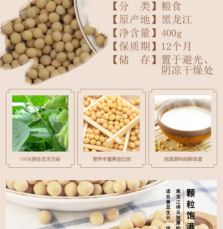 商品名称:银鹤东北杂粮农家黄豆400g(单位:盒)