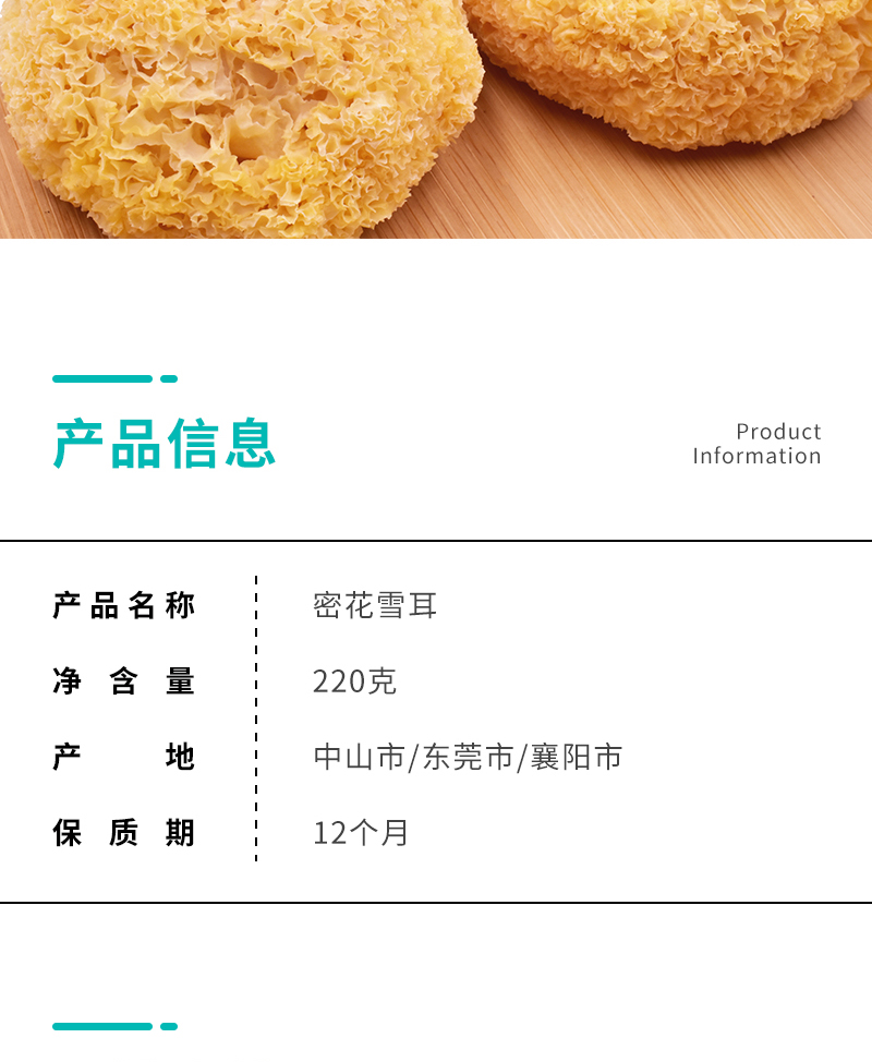 商品名称:山臻U品 密花雪耳 银耳220g /袋