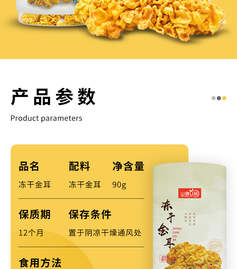 商品名称:山臻U品 冻干金耳90g /罐