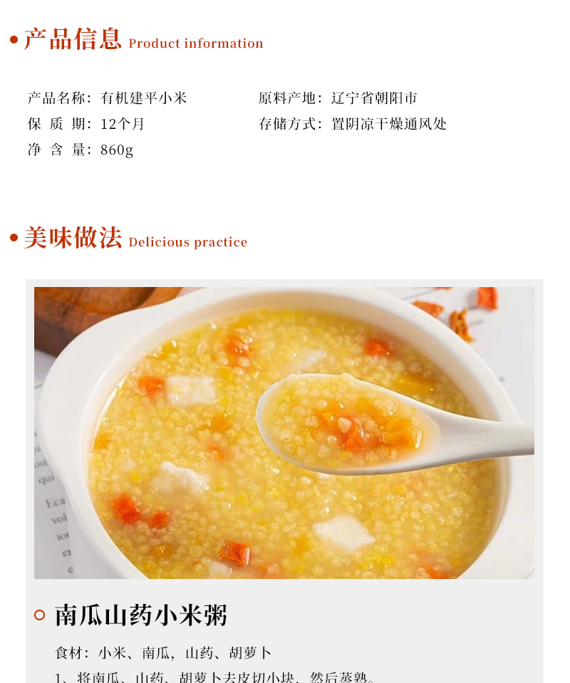 商品名称:山臻U品有机小米860g杂粮 /罐
