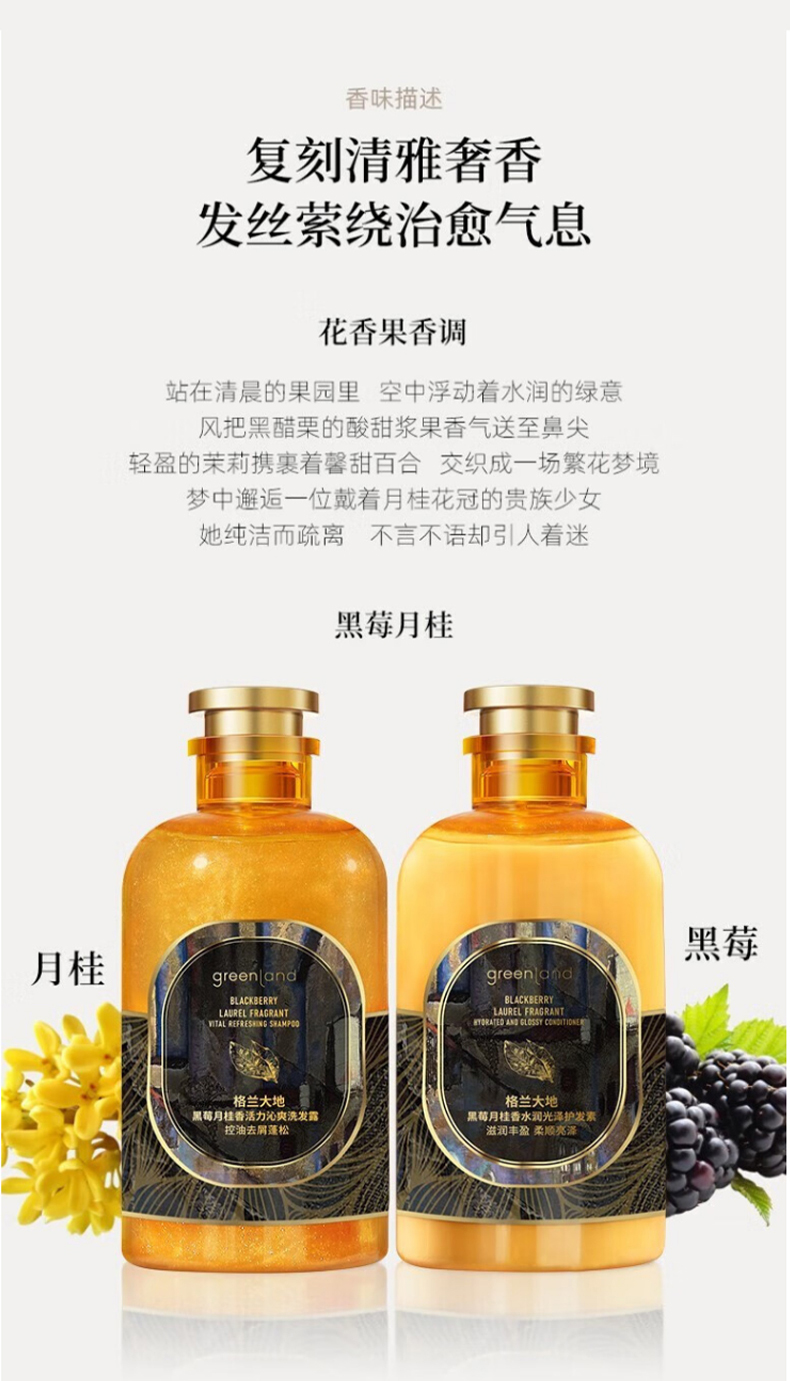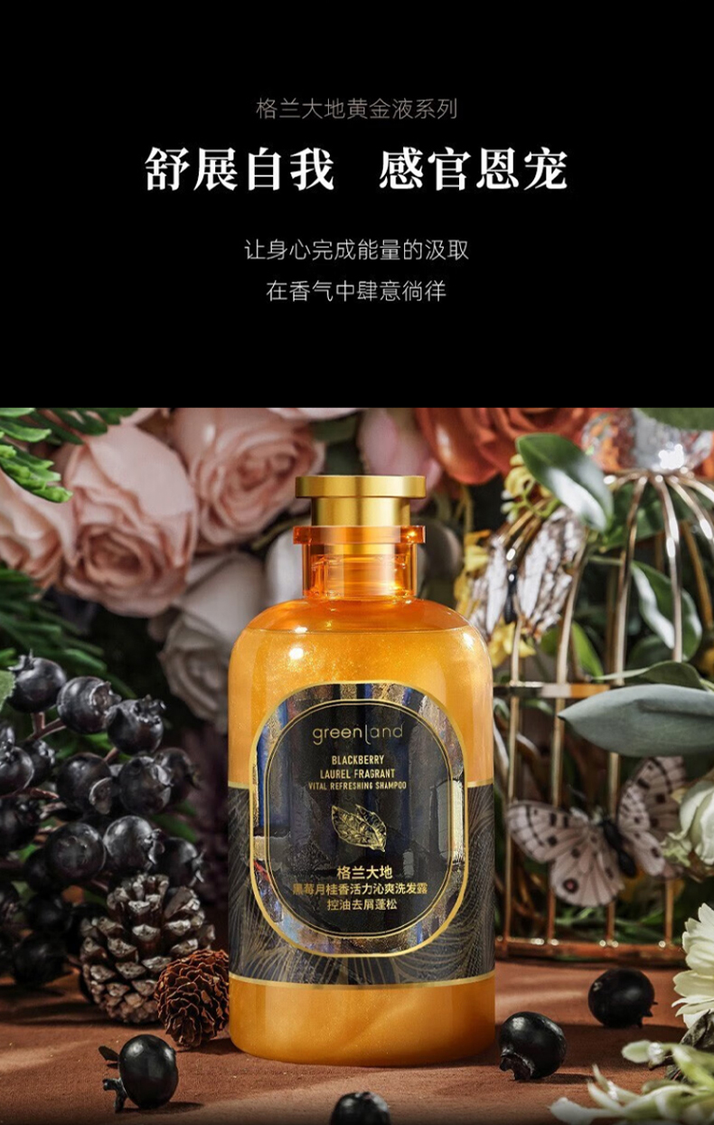 商品名称:格兰大地黑莓月桂香活力沁爽洗发露500ml(单位:瓶)