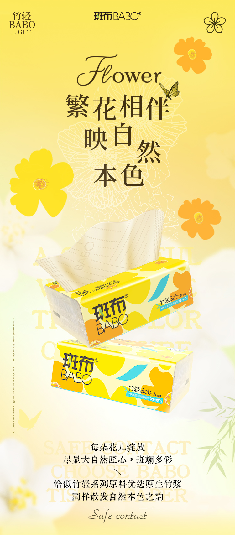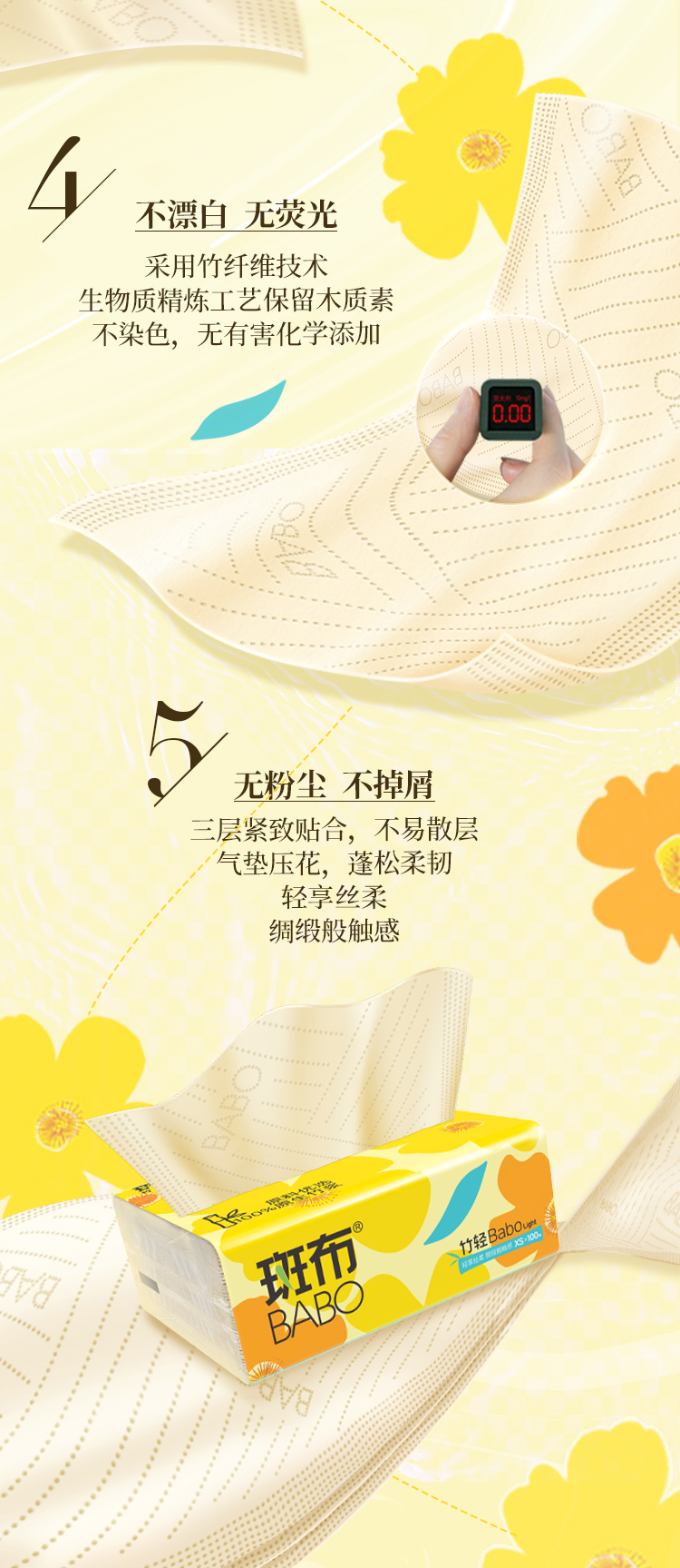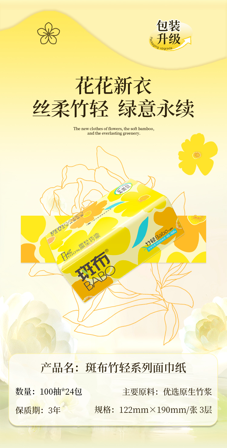 商品名称:斑布(BABO)竹轻系列抽纸 原生竹浆本色3层100抽24包DBZR100E24(单位:箱) 本色