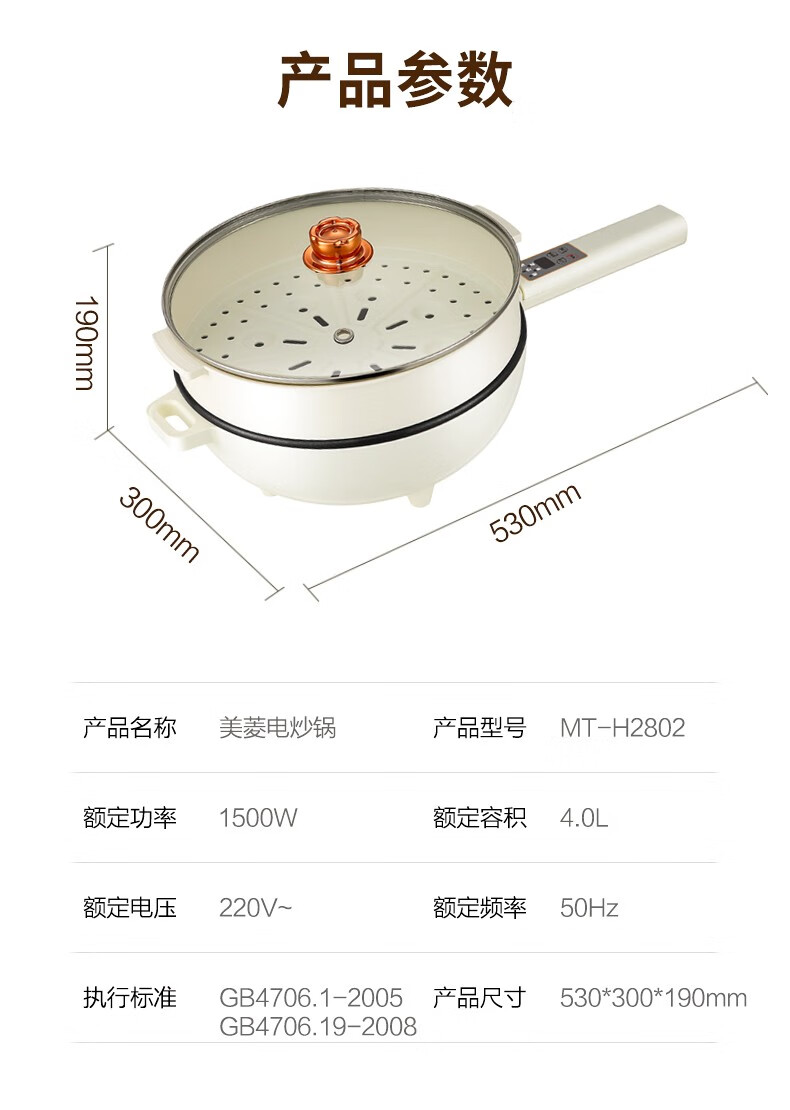 商品名称:MELNG/美菱 双层电炒锅4L MH-H2802(单位:台) 白色