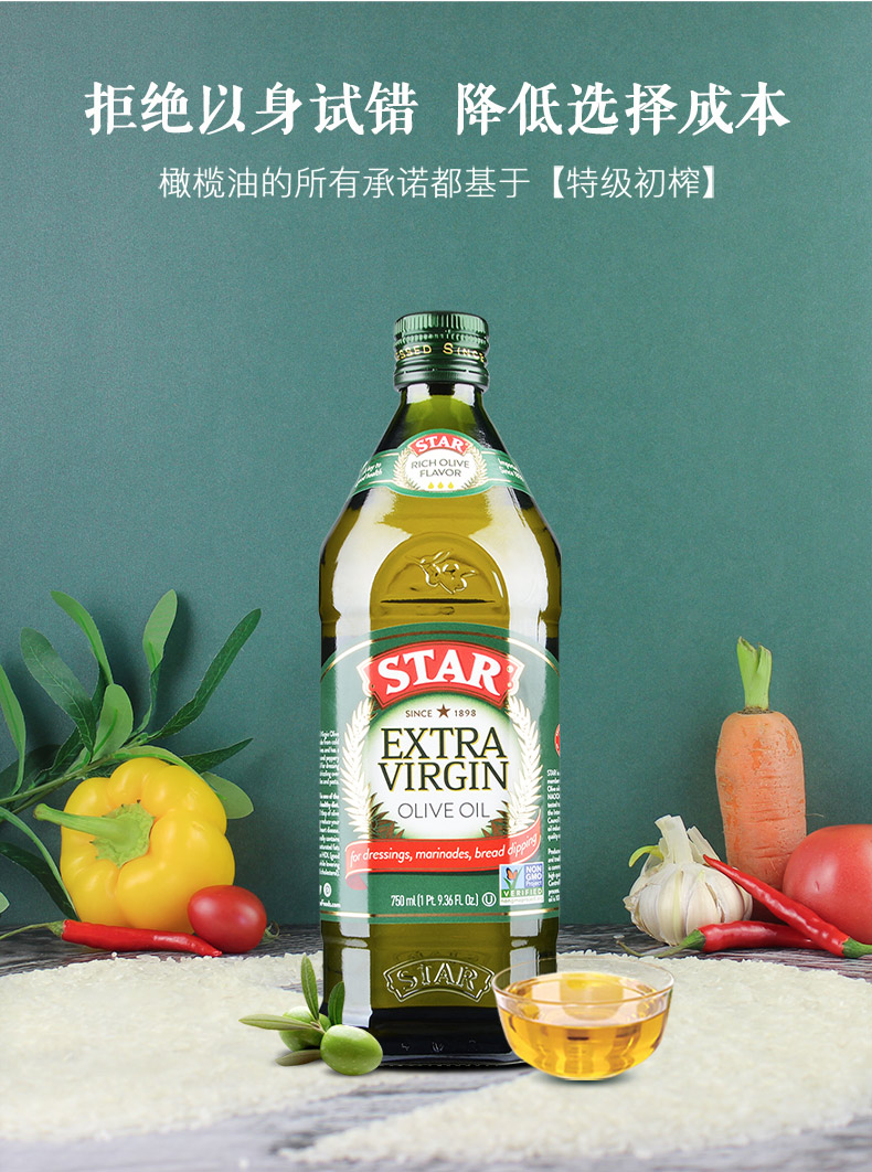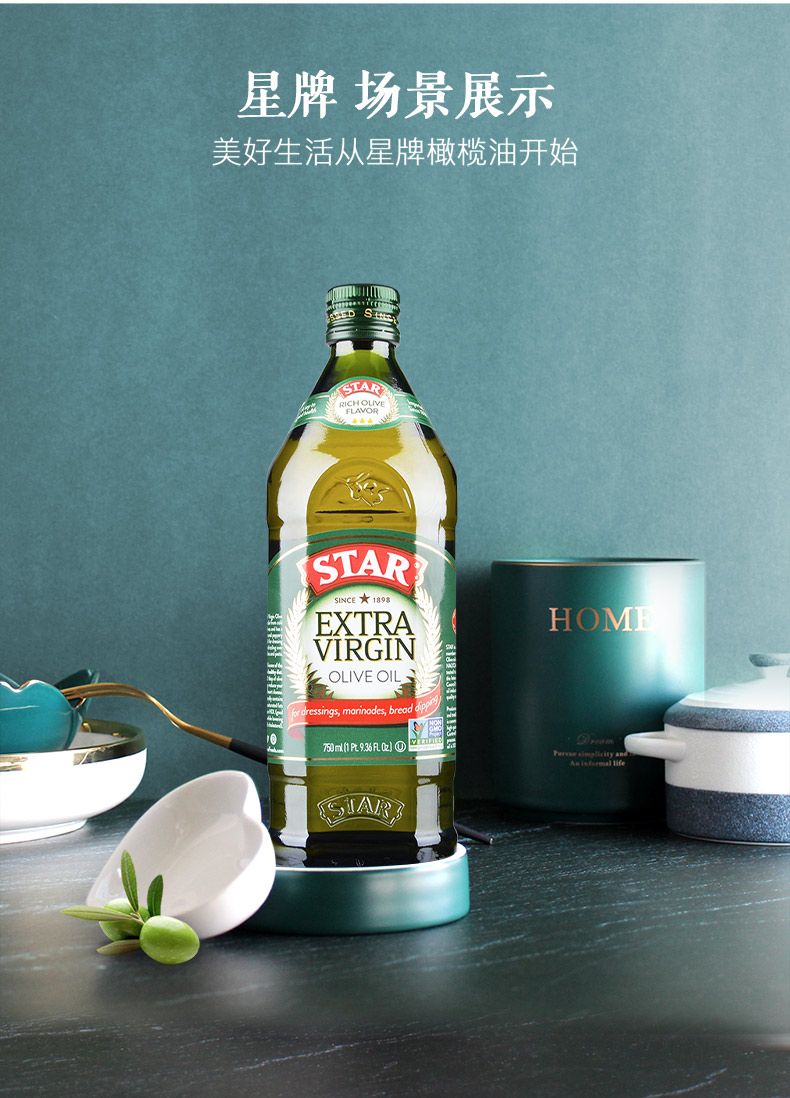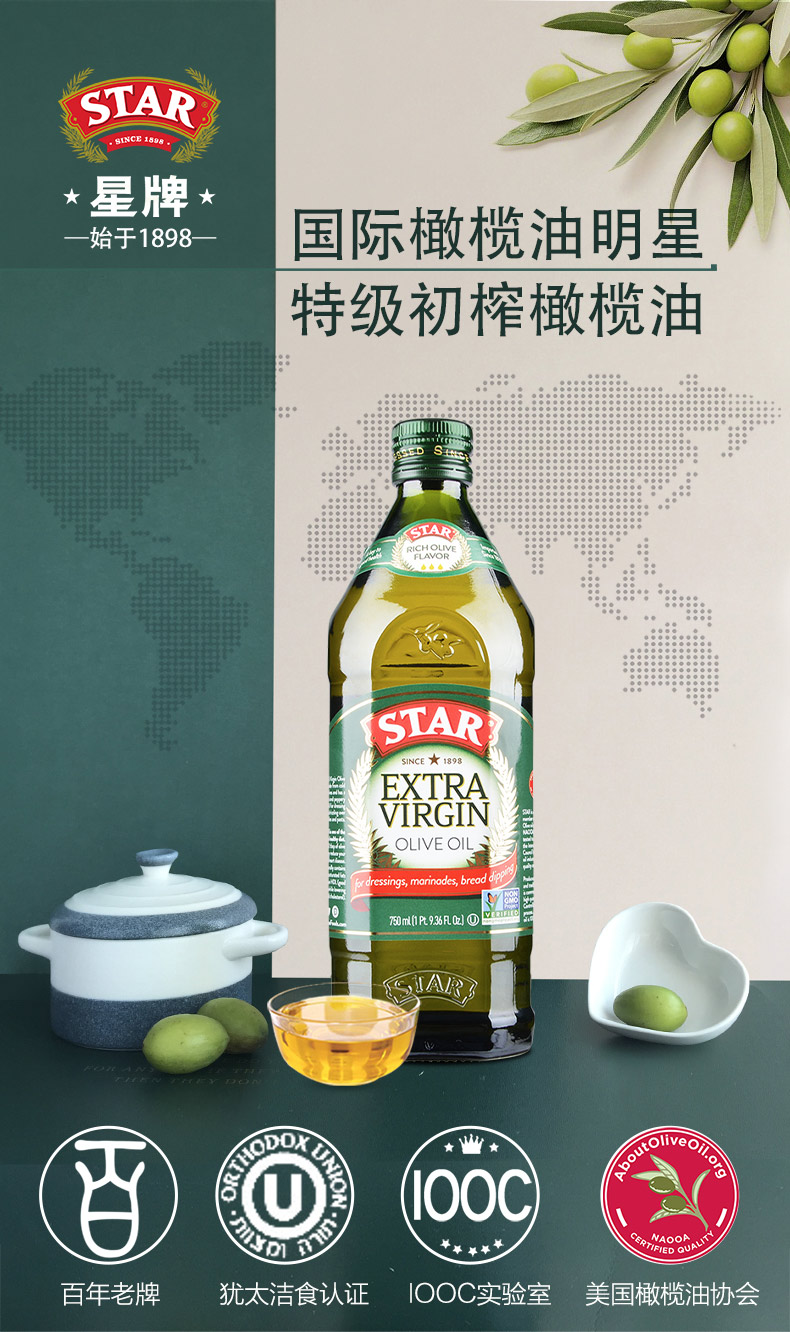 商品名称:星牌特级初榨橄榄油750ml 瓶 橄榄绿