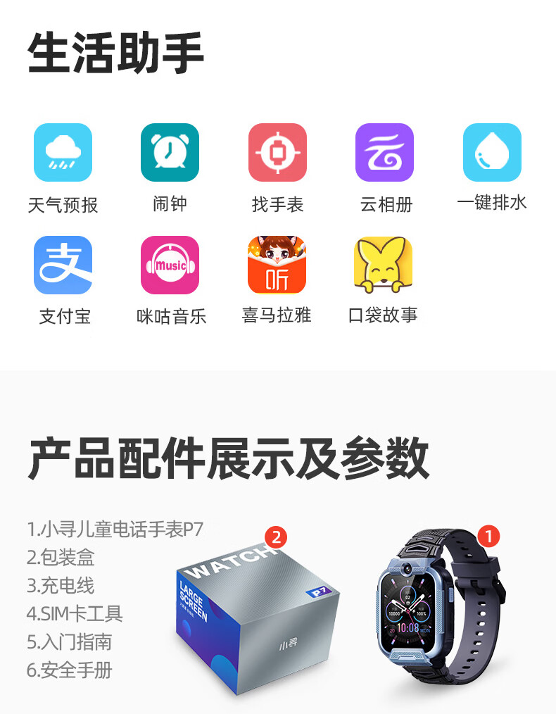 商品名称:小寻儿童电话手表P7薄雾蓝(单位:只)【小米智能生态】 P7薄雾蓝