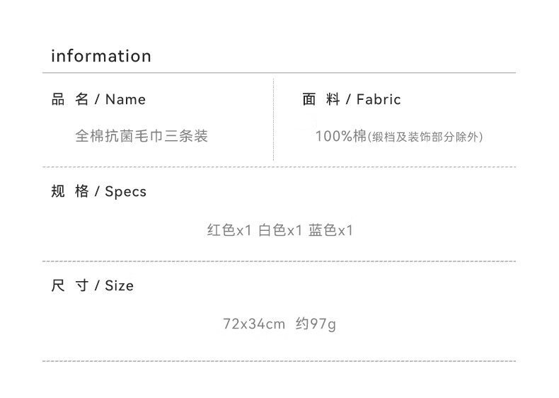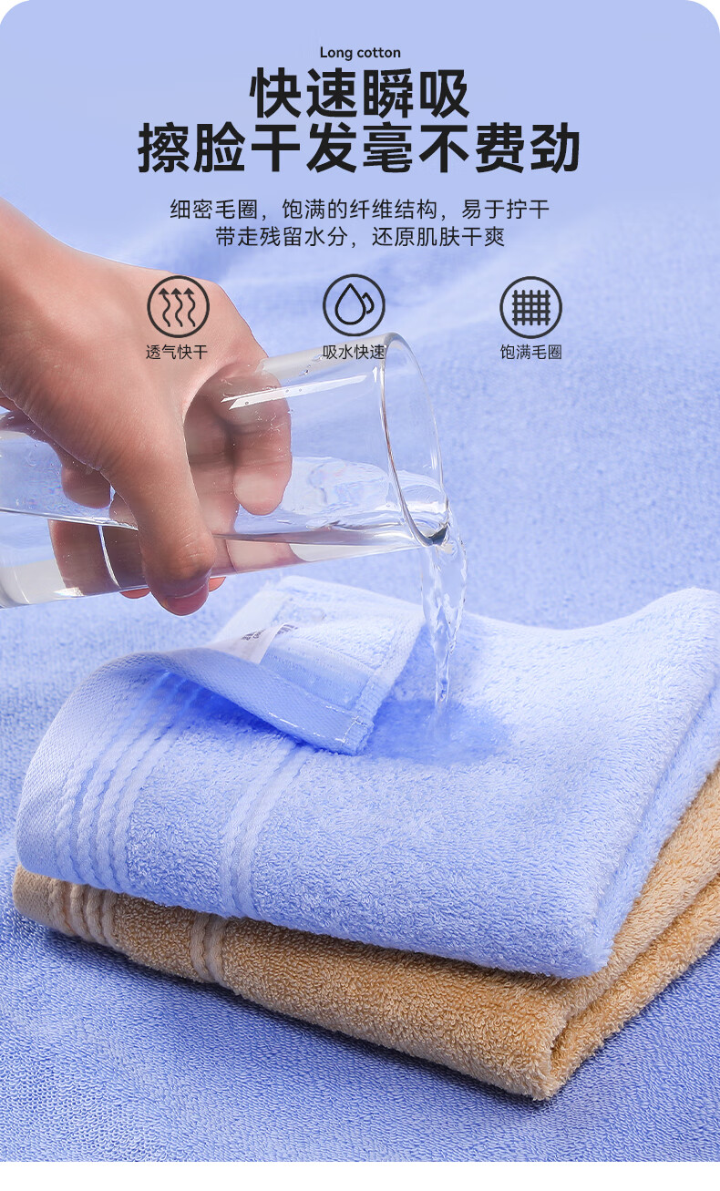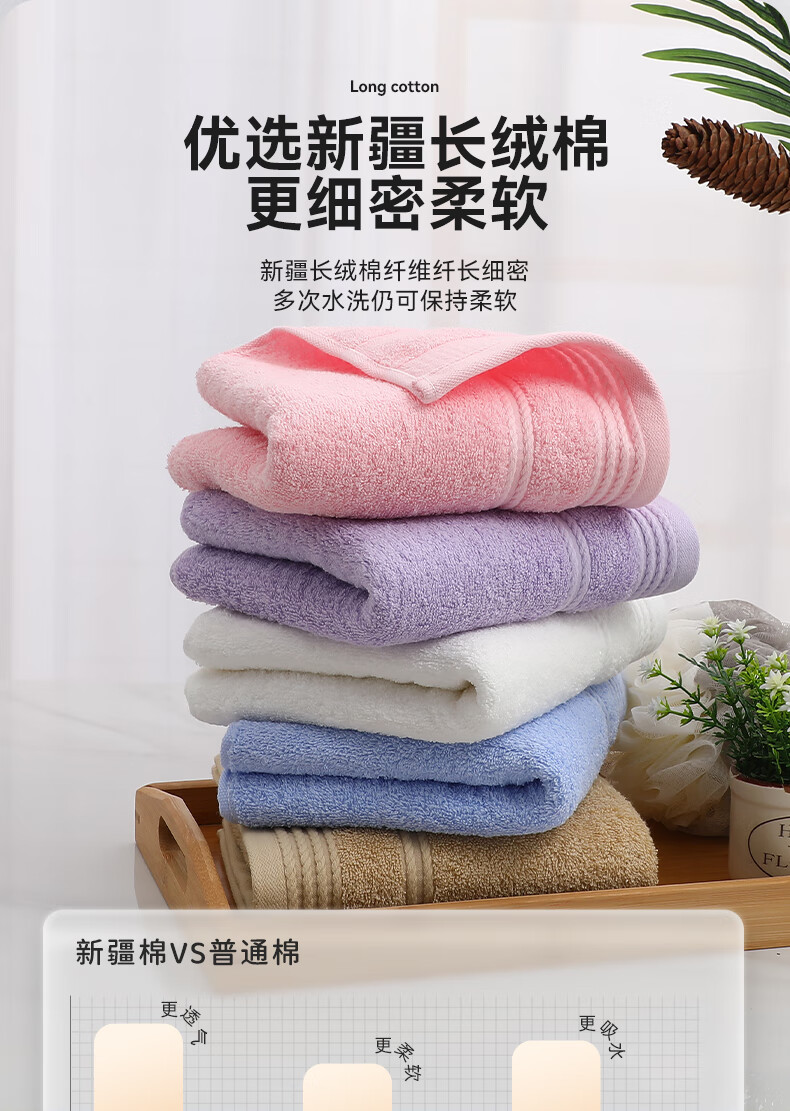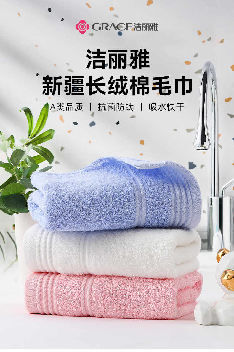 商品名称:洁丽雅(Grace) A类抗菌新疆长绒棉 72*34cm*3 洗脸面巾 混色(单位:组)
