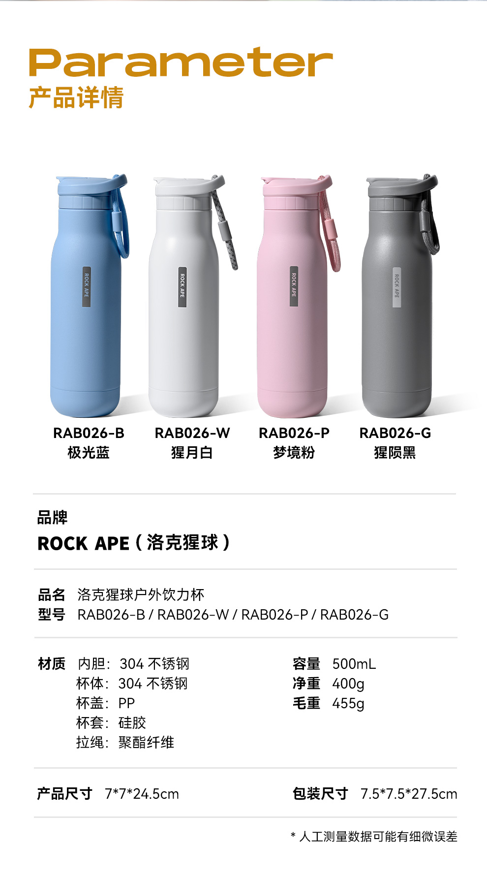 商品名称:洛克猩球 不锈钢硅胶杯保温杯500ML(单位:个) 蓝色 RAB026-B(单位:个)