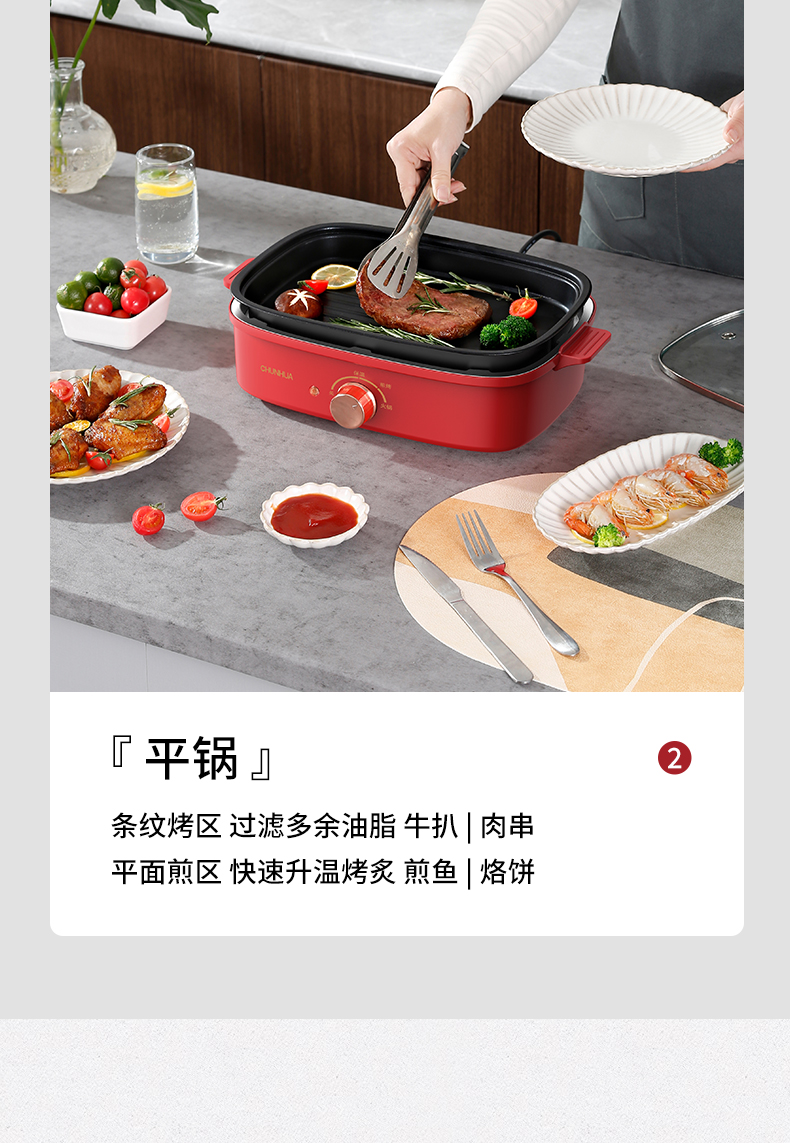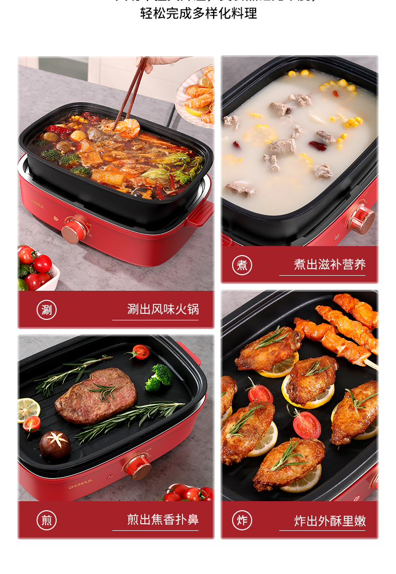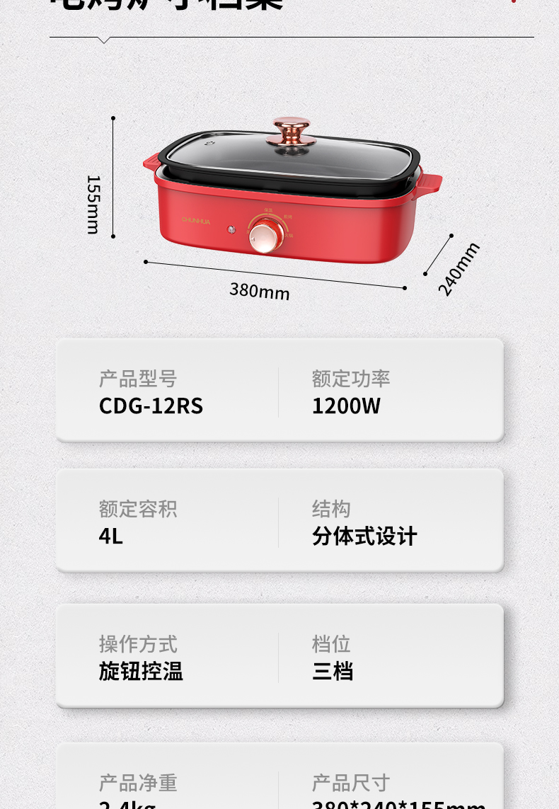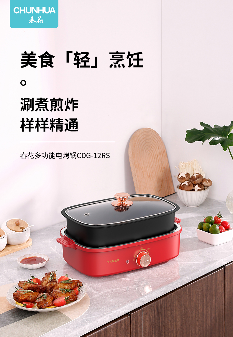 商品名称:春花 CDG-12RS 家用多功能电烤锅(单位:台) 红色