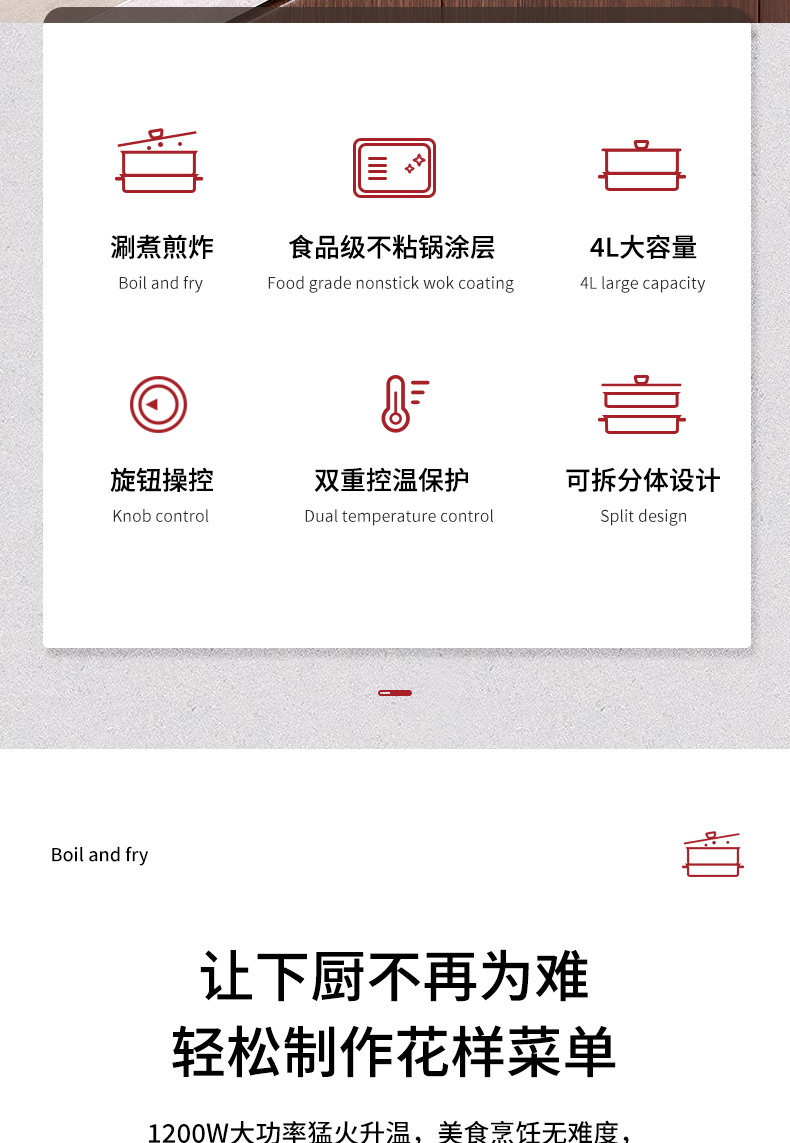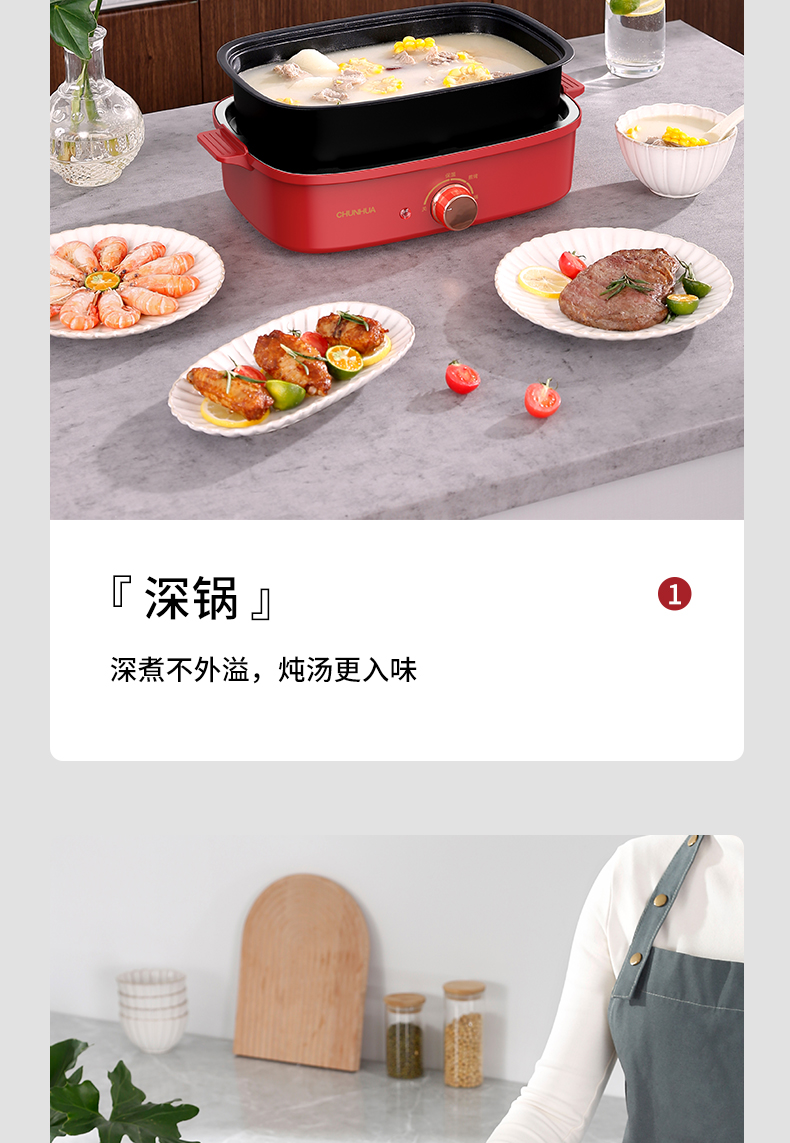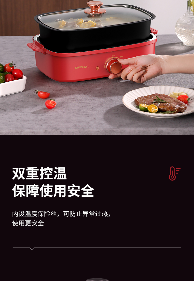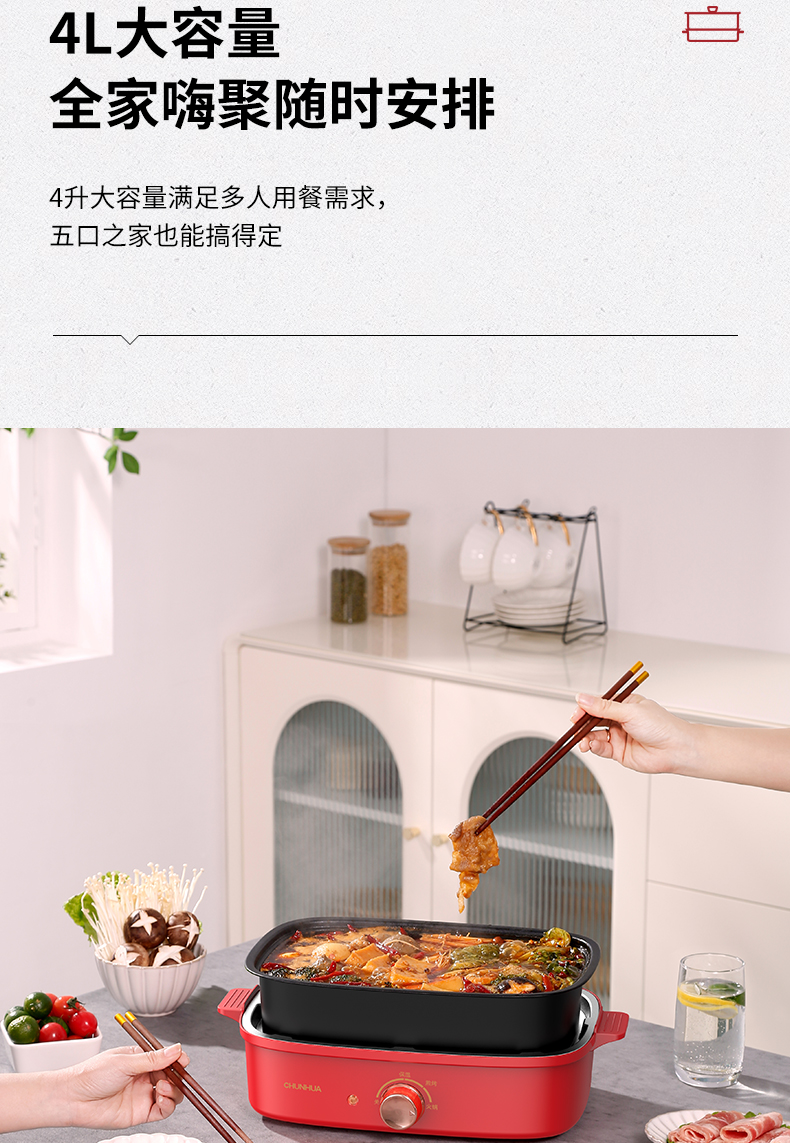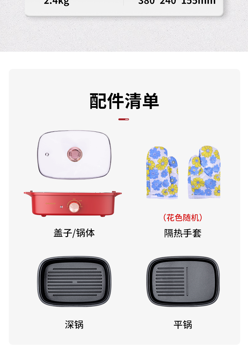 商品名称:春花 CDG-12RS 家用多功能电烤锅(单位:台) 红色