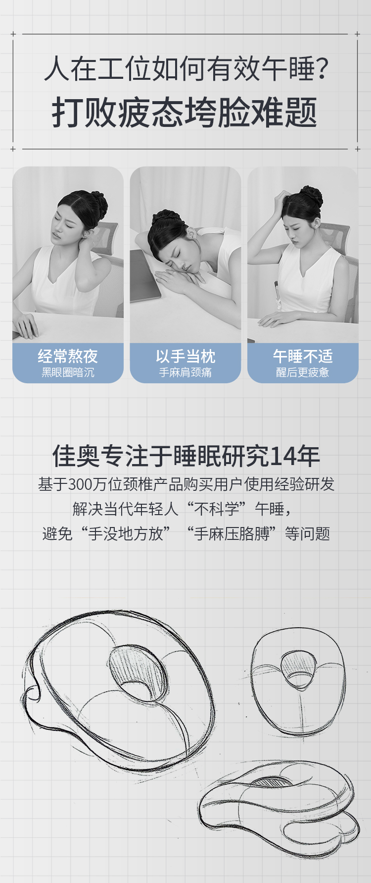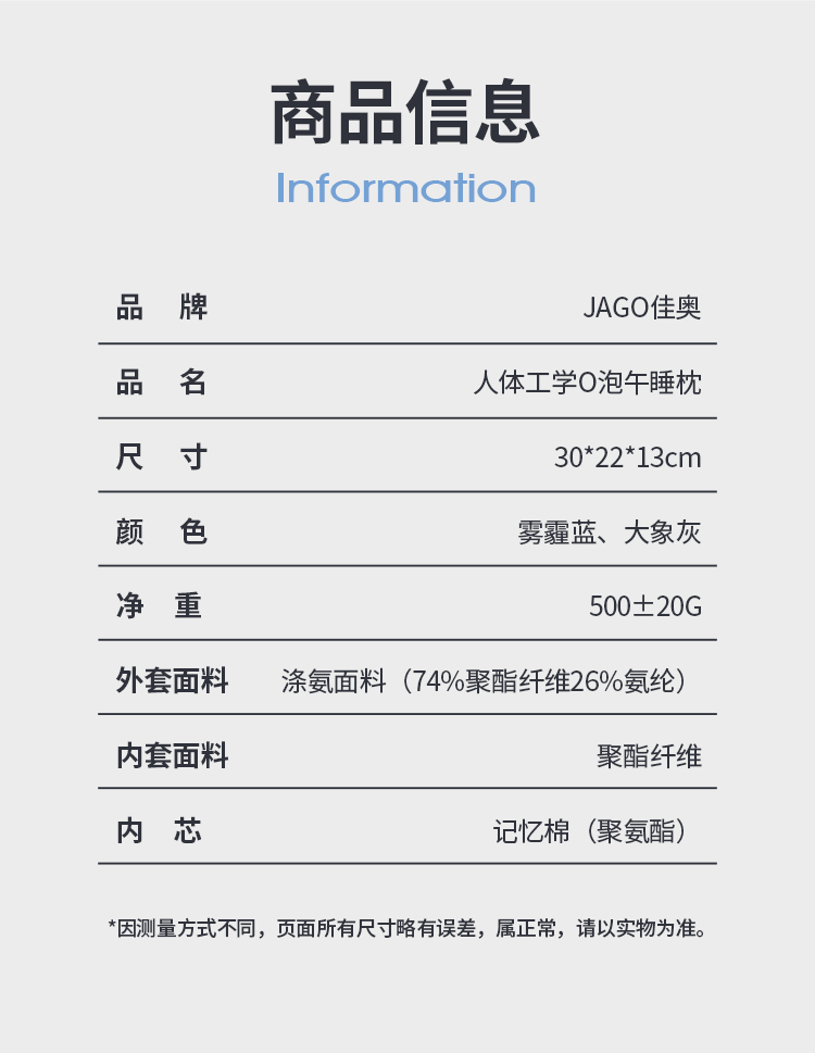 商品名称:佳奥 人体工学O泡午睡枕 242501J0100MS9(单位:个) 天蓝色