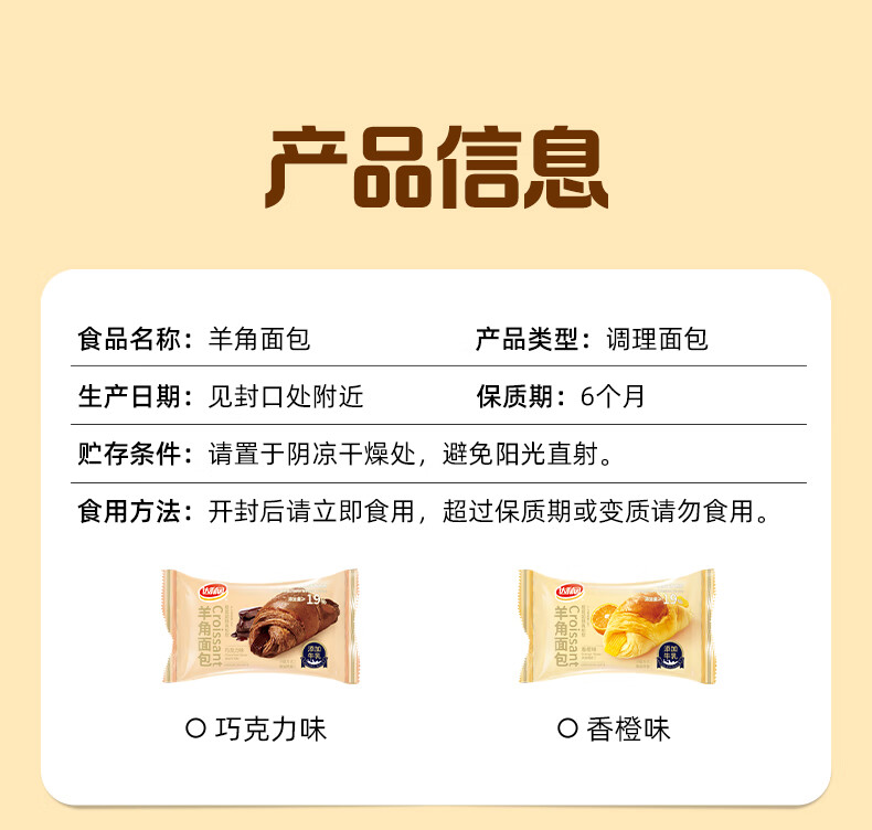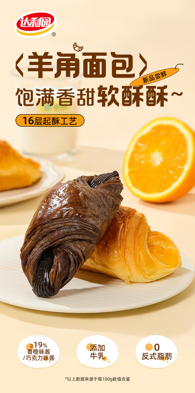商品名称:达利园羊角面包香橙味 250g (10枚装)/袋