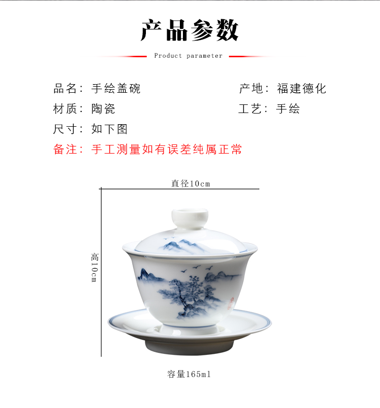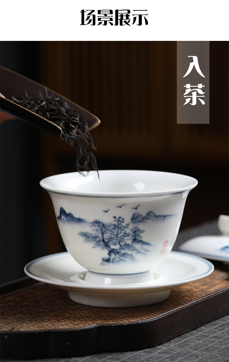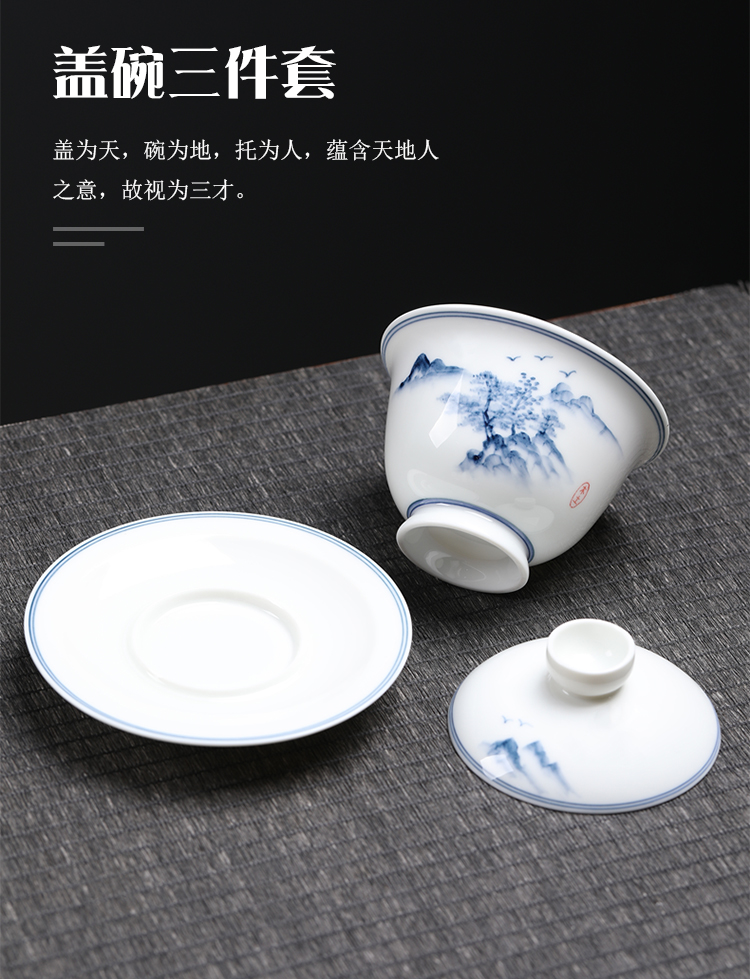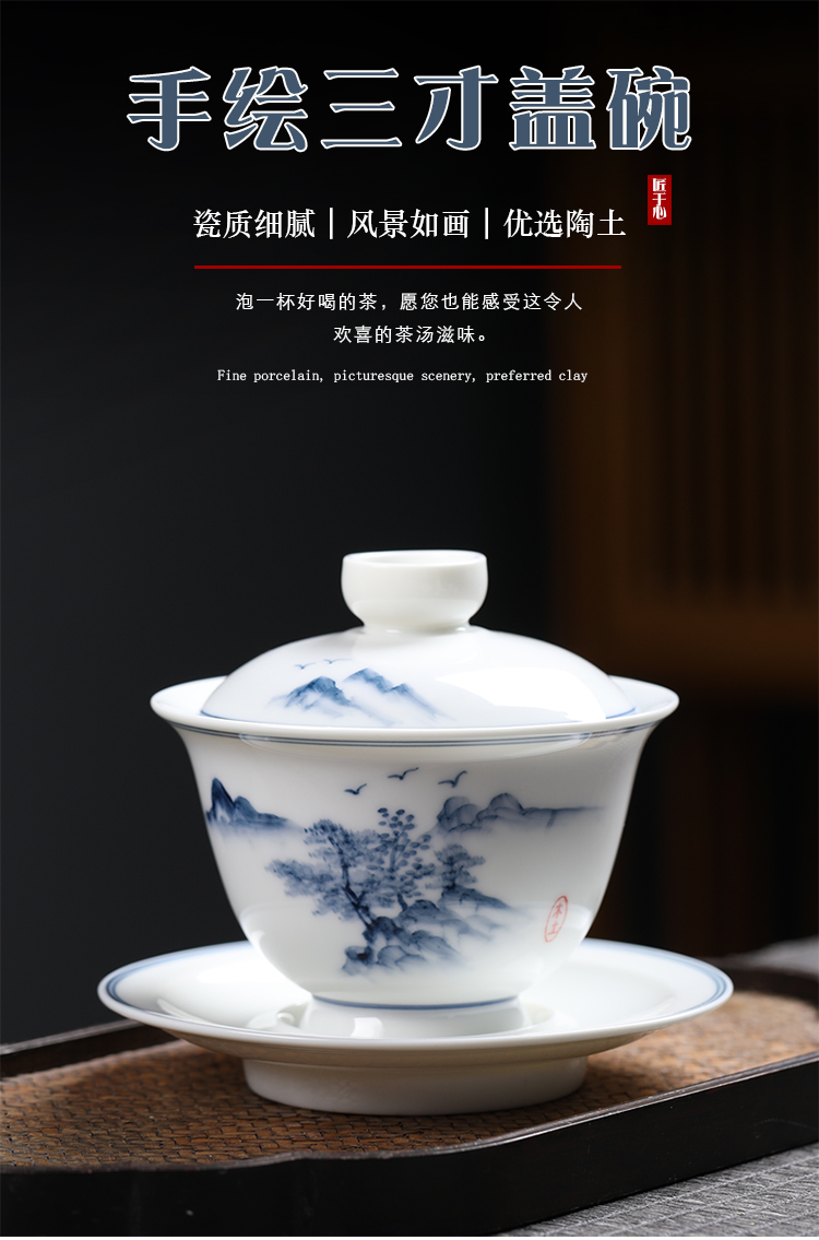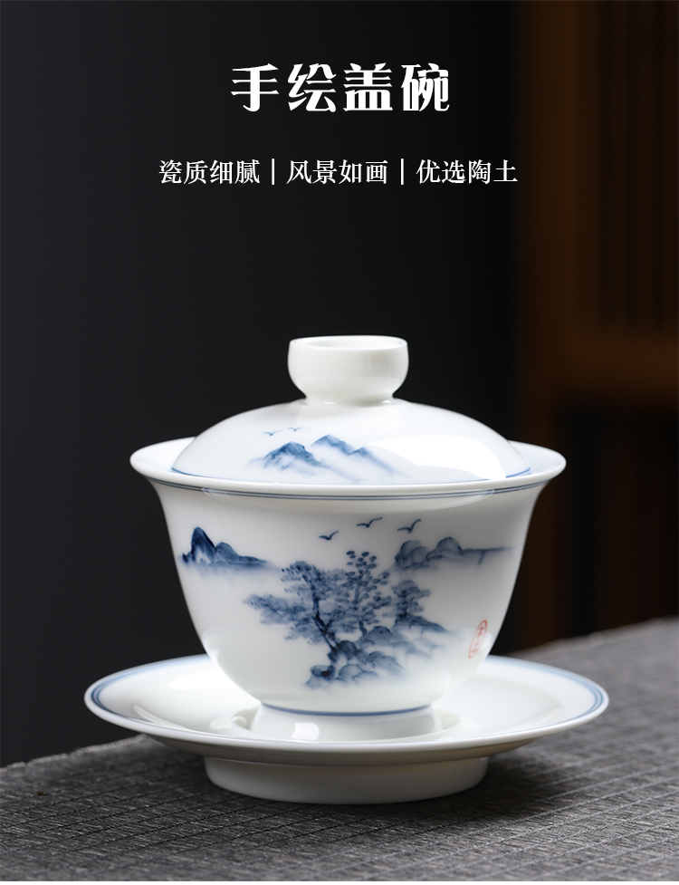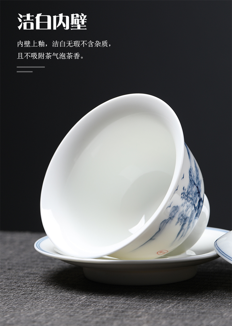商品名称:MULTIPOTENT元青 盖碗白瓷手绘江山如画薄胎三才盖碗(单位:个) 白色