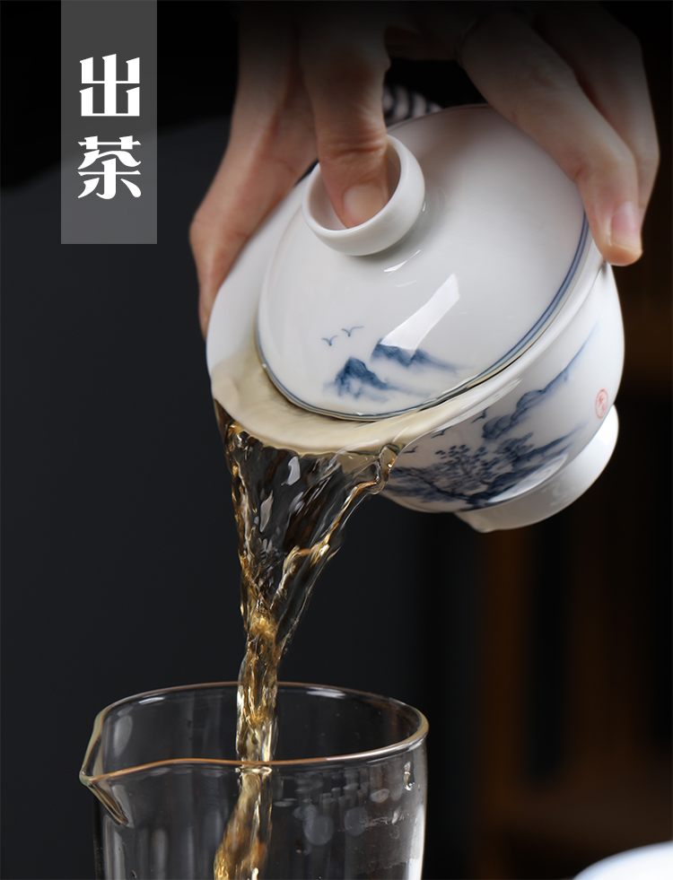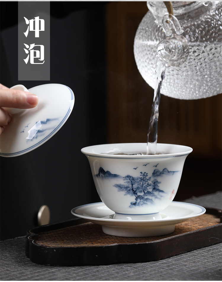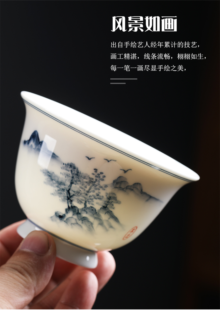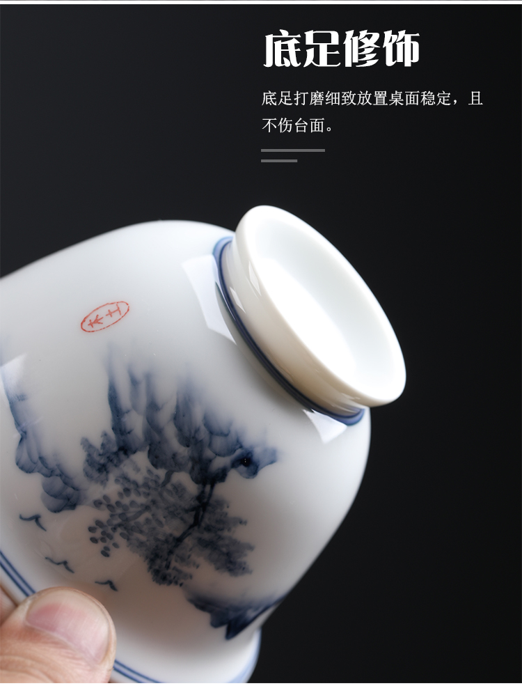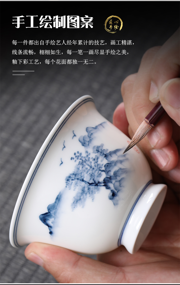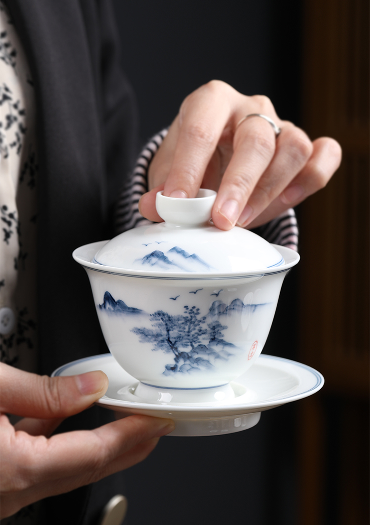 商品名称:MULTIPOTENT元青 盖碗白瓷手绘江山如画薄胎三才盖碗(单位:个) 白色