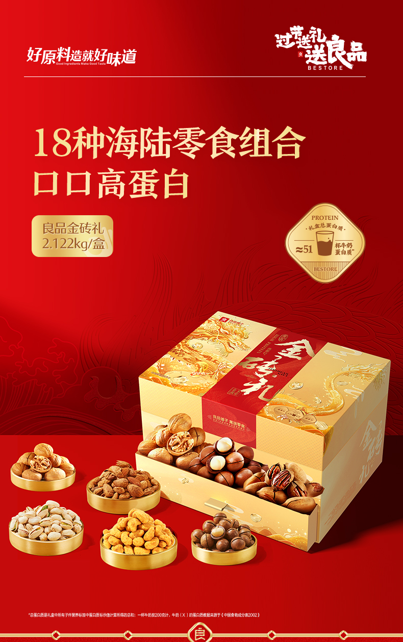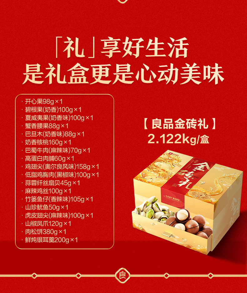 商品名称:良品铺子 高蛋白金砖礼2122g单位:盒 金色