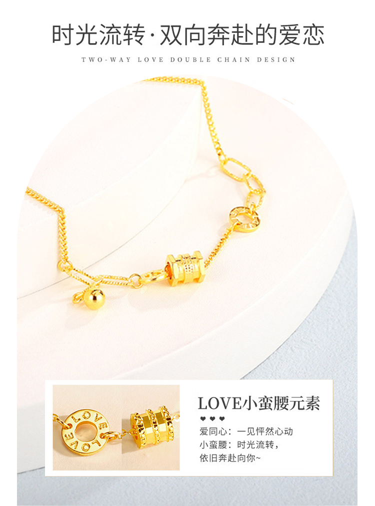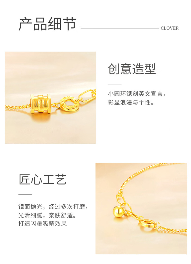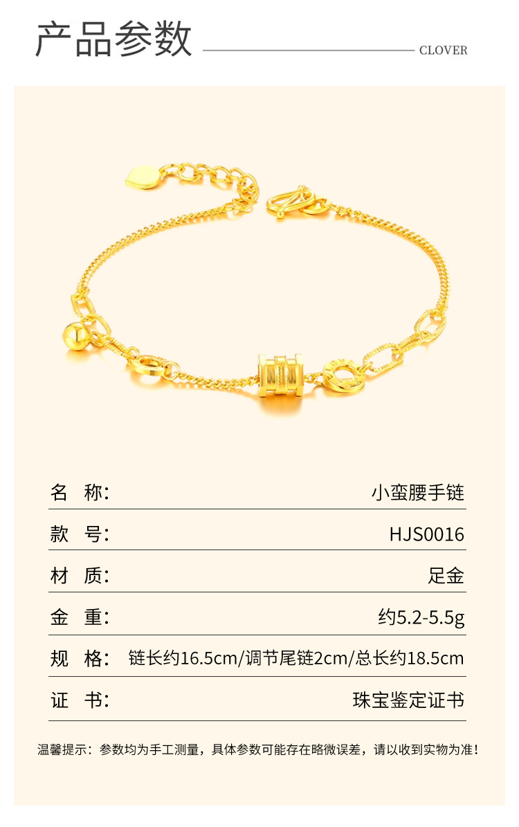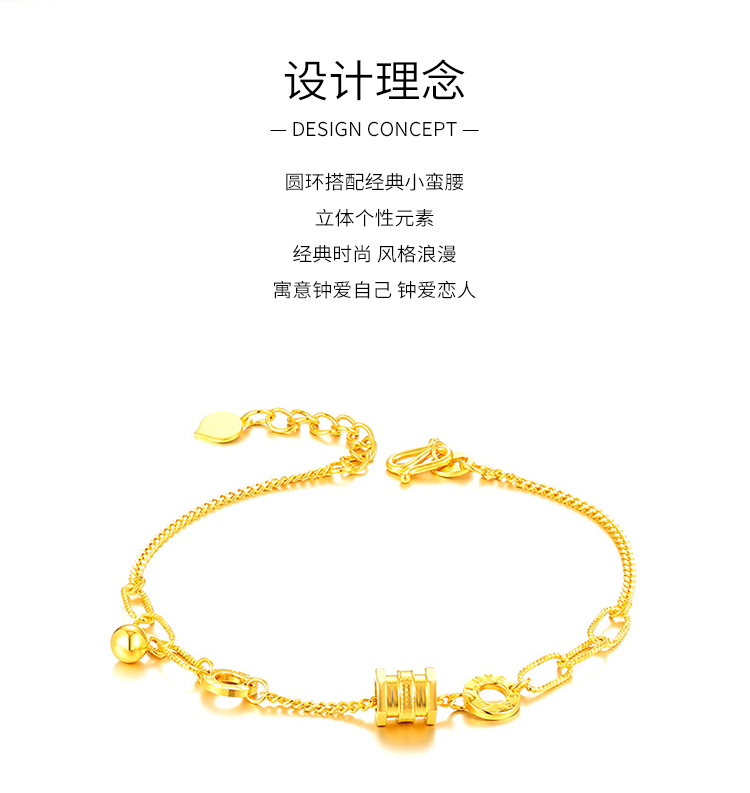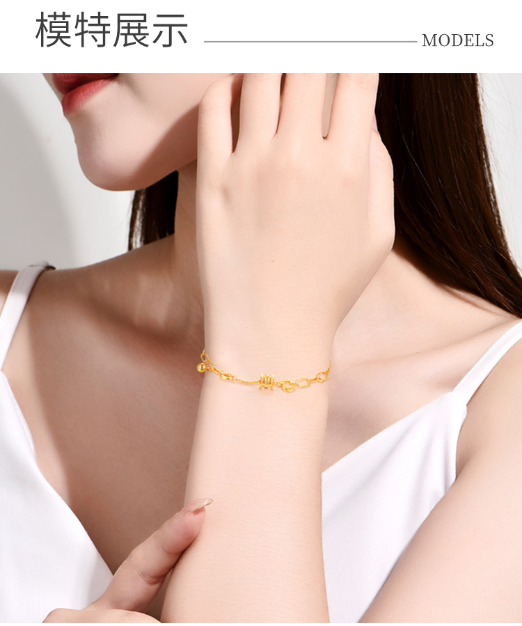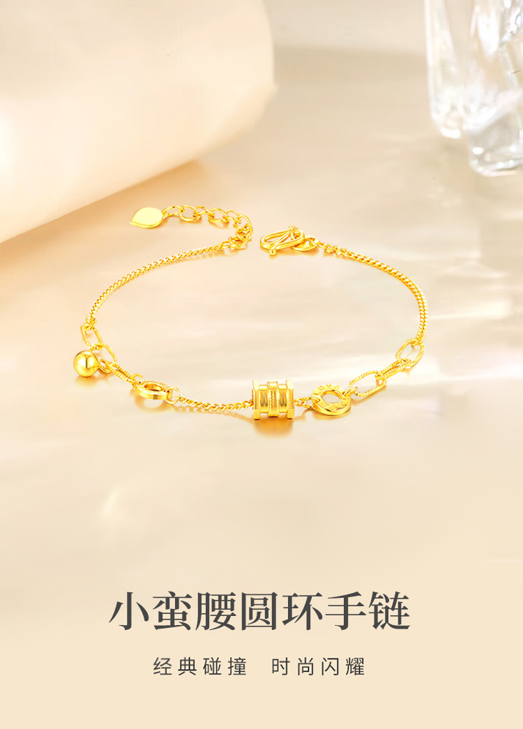 商品名称:GZUAN古钻珠宝 黄金手链女999足金精品小蛮腰手链新转运珠手饰情人节生日礼物 HJS0016/件 金色