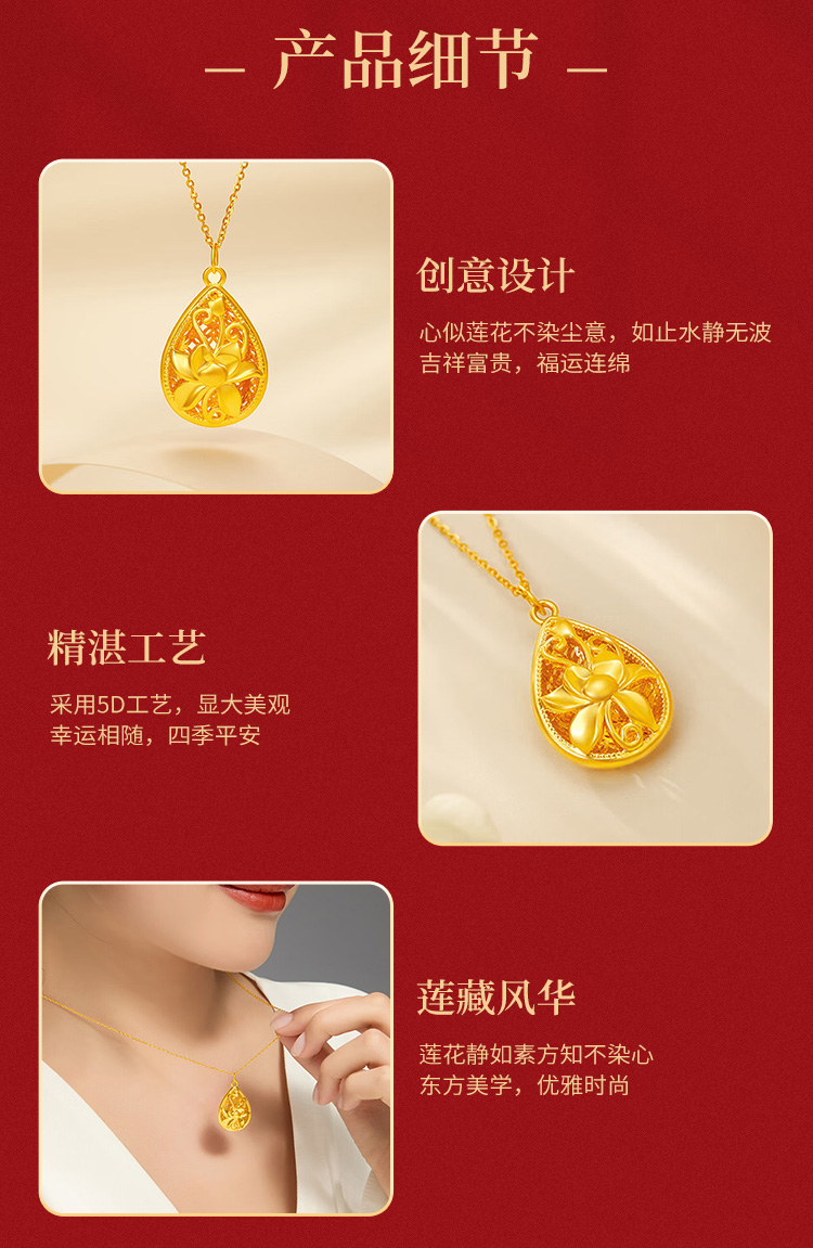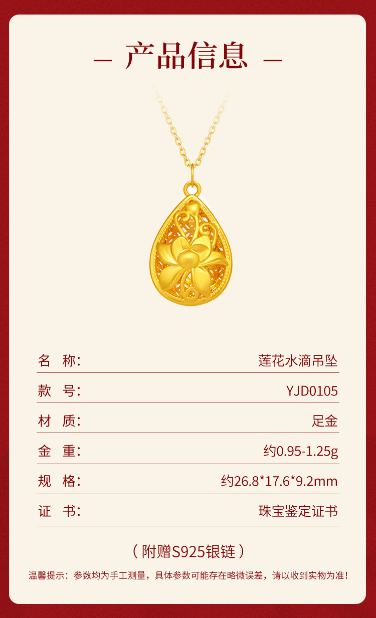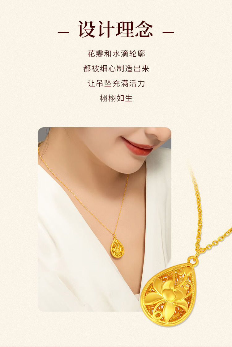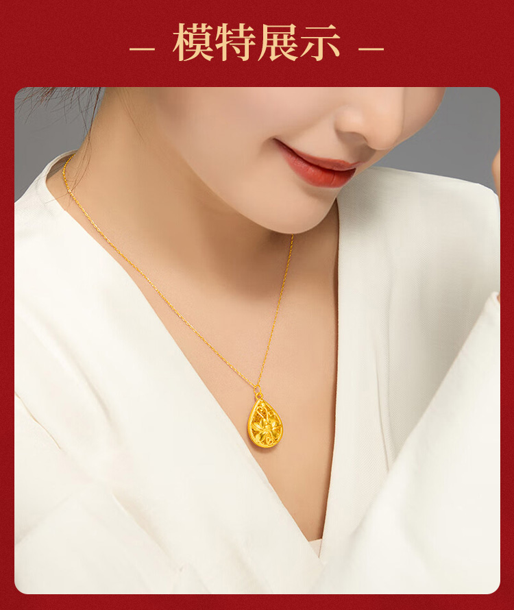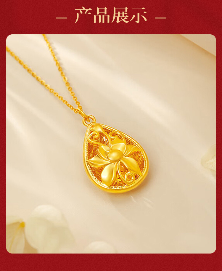商品名称:GZUAN古钻珠宝黄金莲花吊坠足金繁花水滴吊坠项链送妈妈送老婆生日礼赠S925银链YJD0105/件 金色