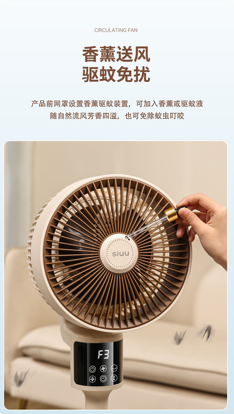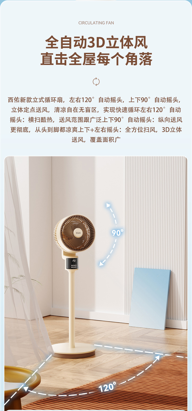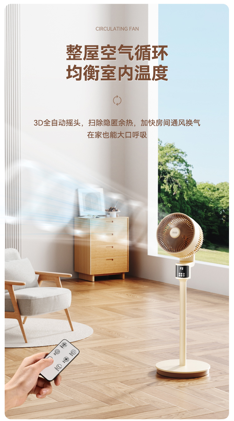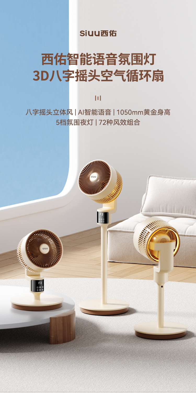 商品名称:西佑遥控语音氛围夜灯空气循环扇电风扇落地扇八字摇头4D风扇(单位:台)XF610 奶咖棕