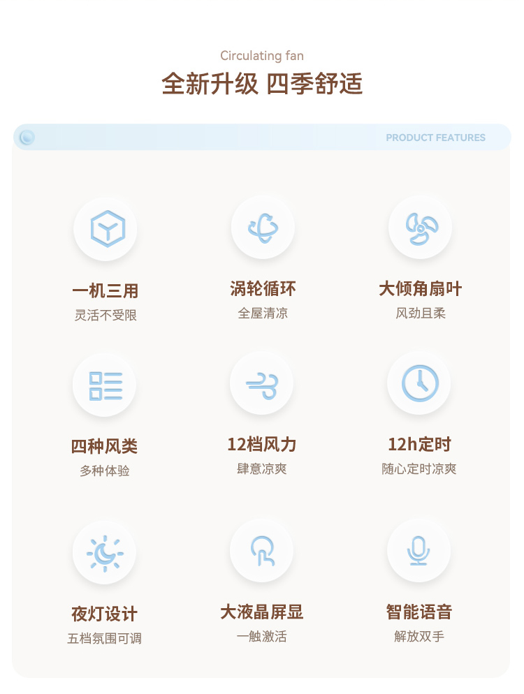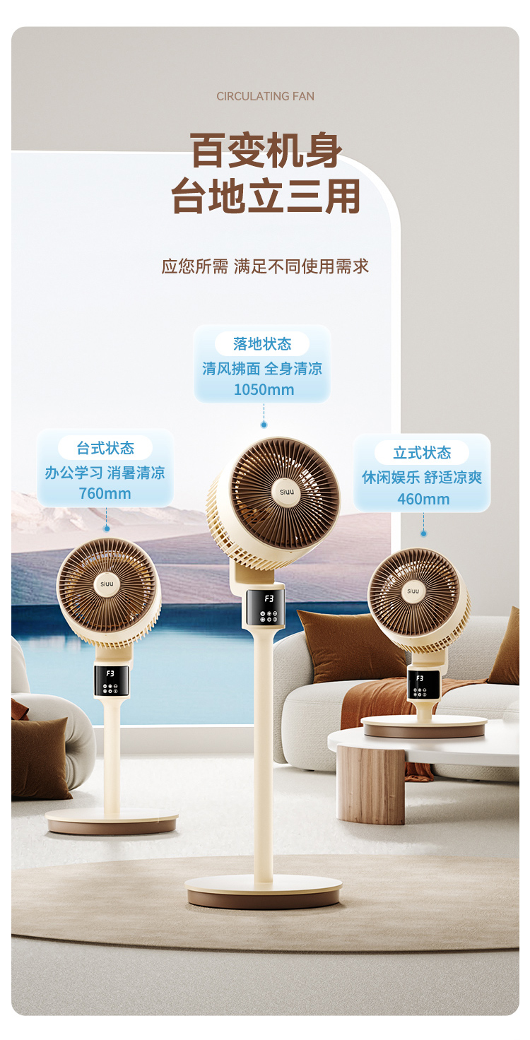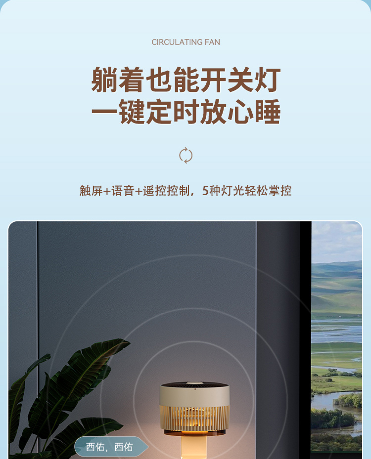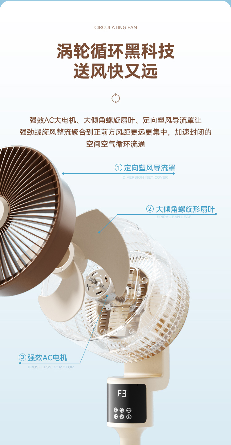 商品名称:西佑遥控语音氛围夜灯空气循环扇电风扇落地扇八字摇头4D风扇(单位:台)XF610 奶咖棕