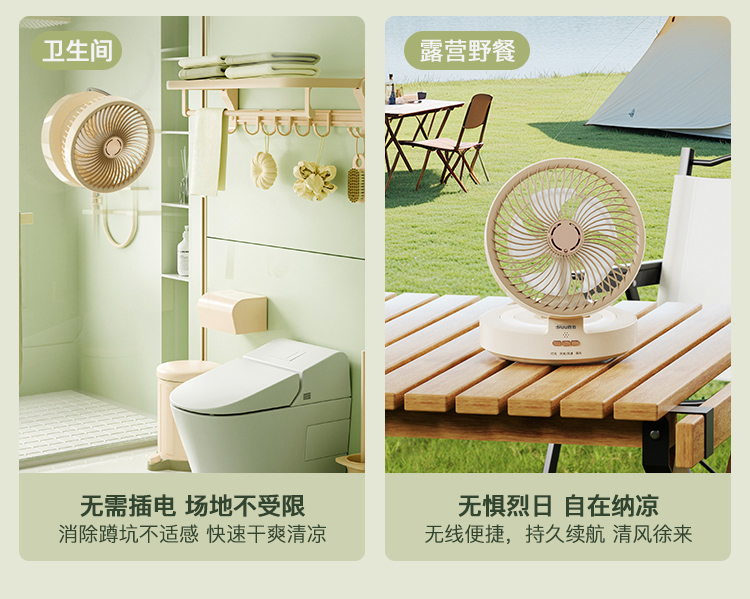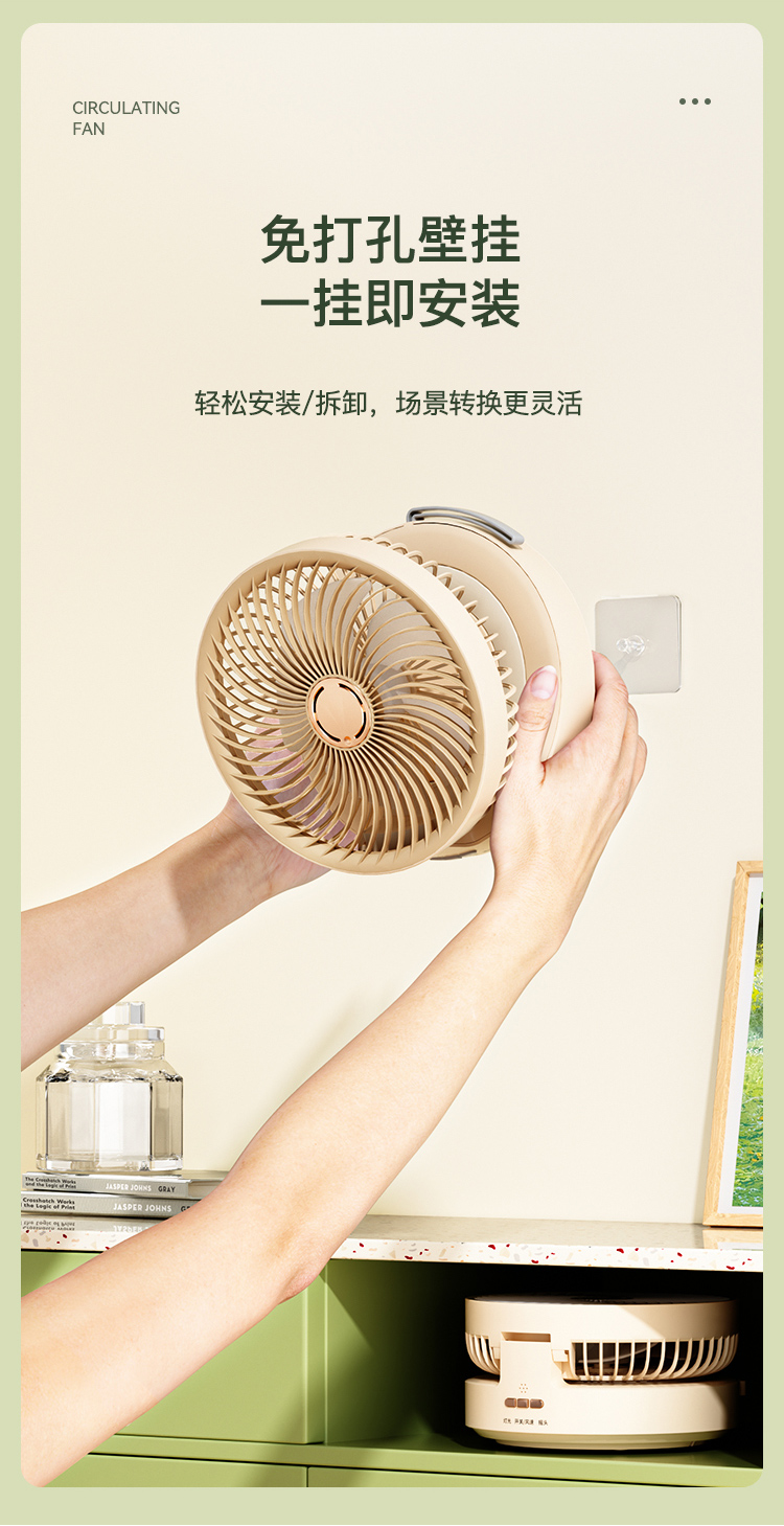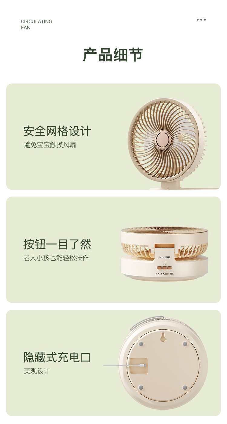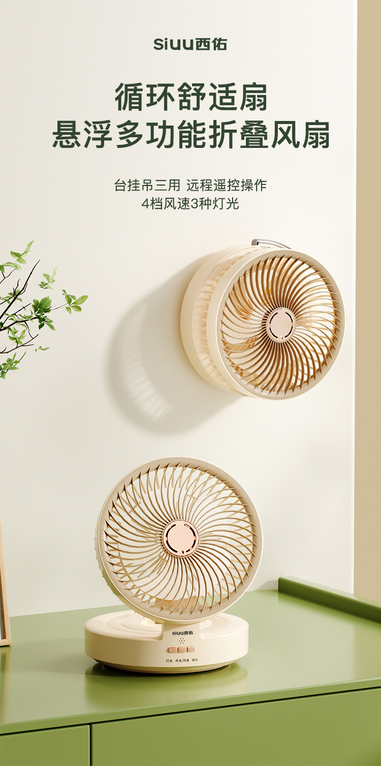 商品名称:西佑遥控悬浮可壁挂折叠夜灯蓄电风扇厨房洗手间户外便携风扇学生宿舍多-新款SF2401(单位:台) 奶咖色