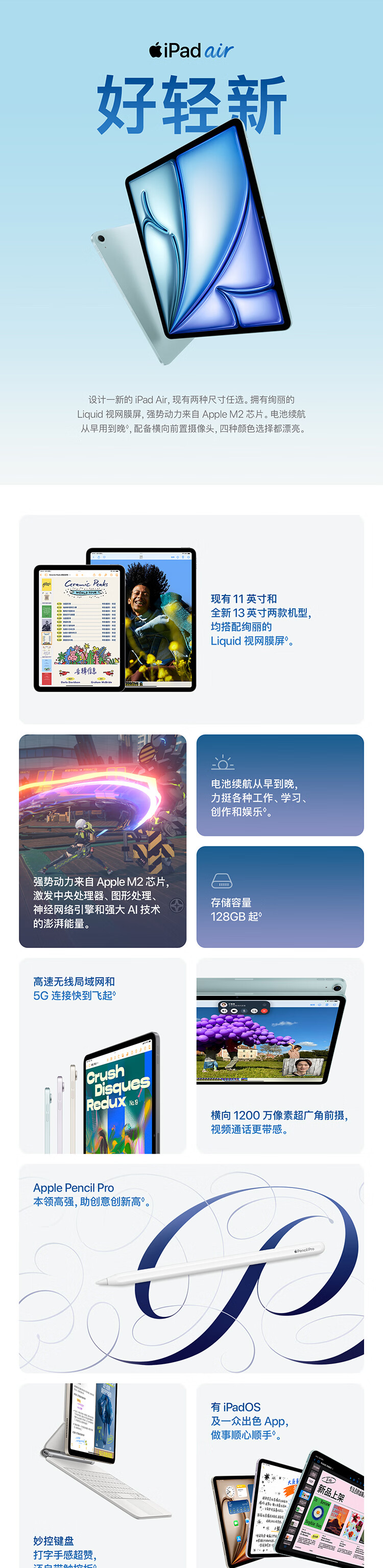 商品名称:Apple iPad Air 11英寸 M2芯片 平板电脑 WiFi版 256G(单位/台) 深空灰色