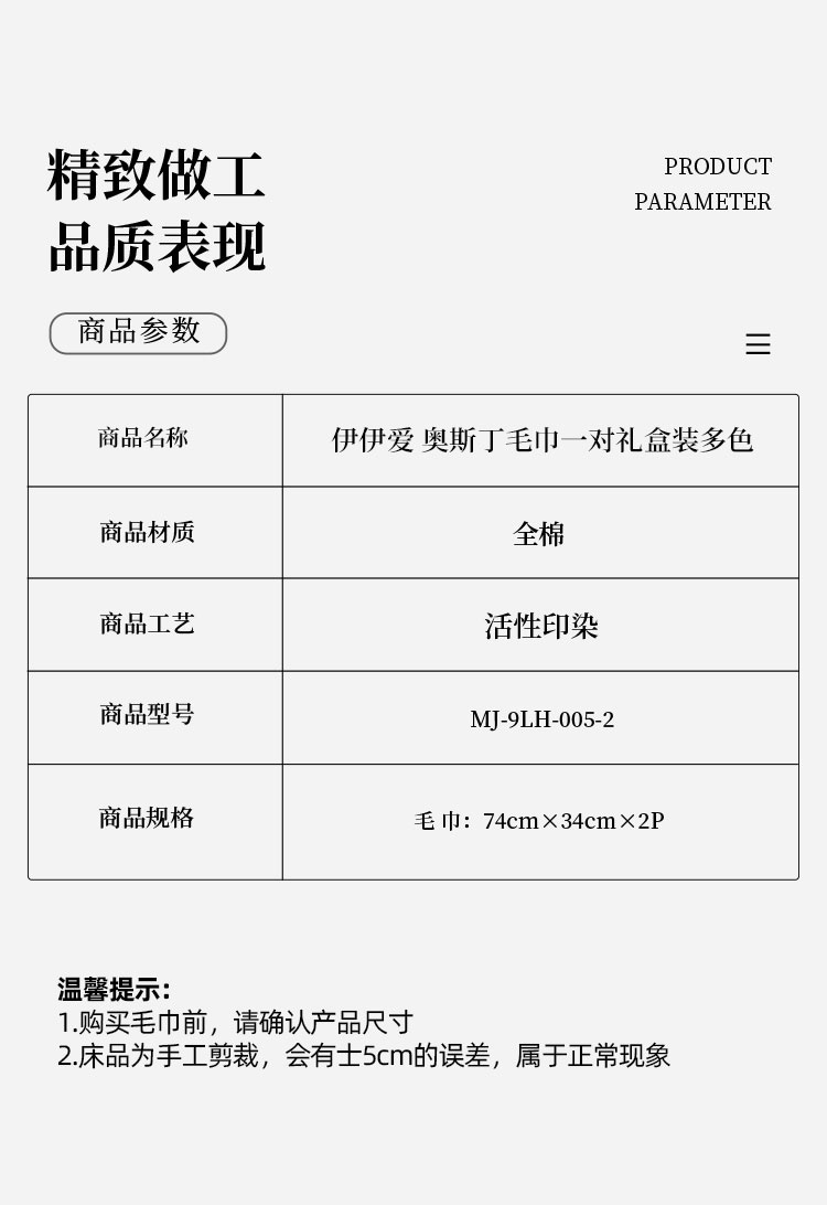 商品名称:伊伊爱奥斯丁毛巾一对礼盒装34*74cm MJ-9LH-005-2(盒) 混色