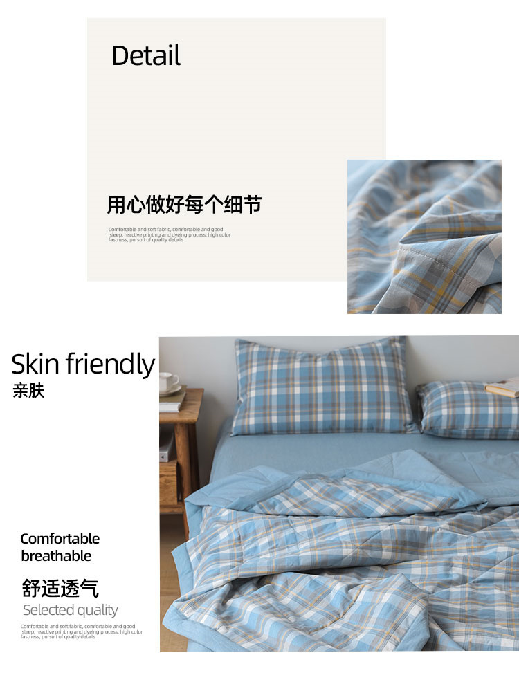 商品名称:伊伊爱色织水洗棉夏被150*200cm BZ0BOL2401152(条) 简兮蓝