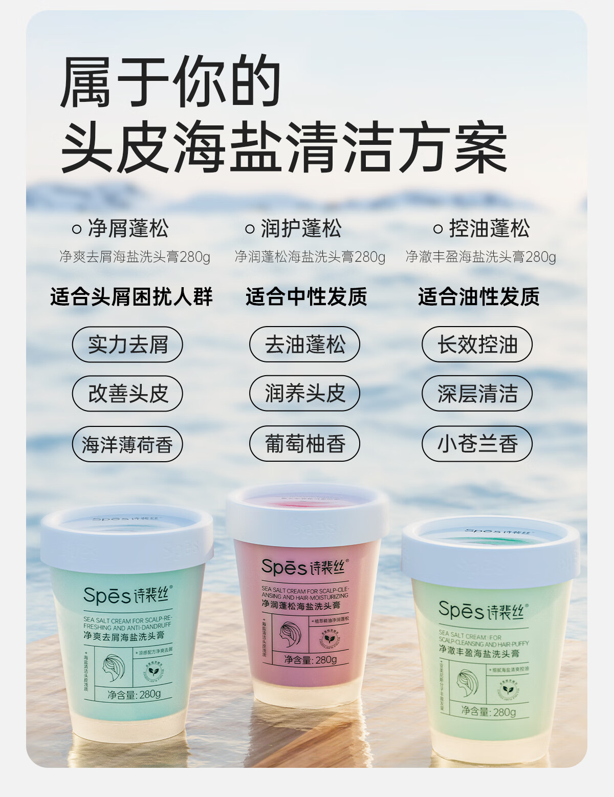 商品名称:spes诗裴丝净澈丰盈海盐洗头膏280g(单位:瓶) 雾雨绿