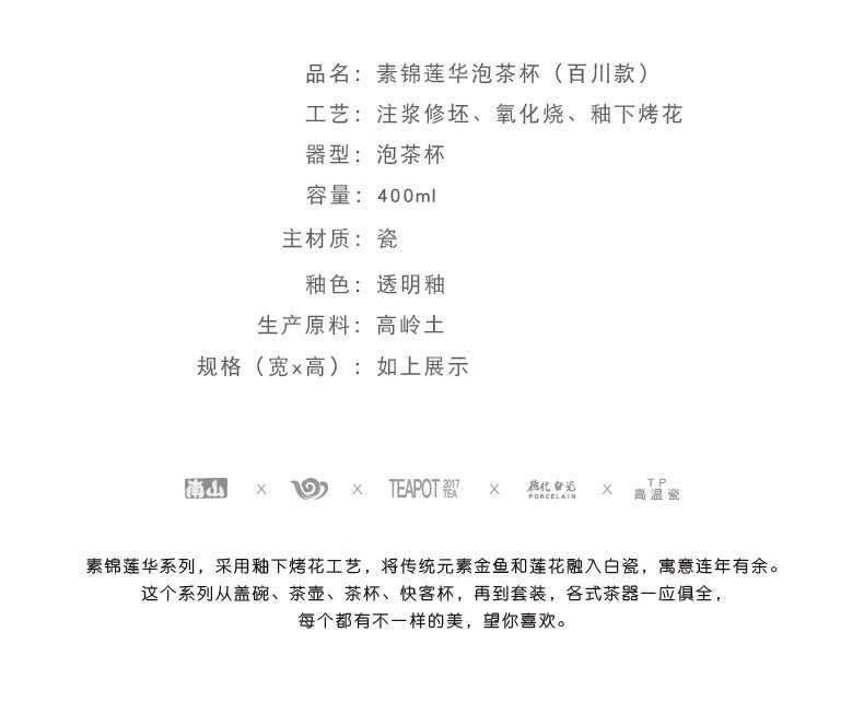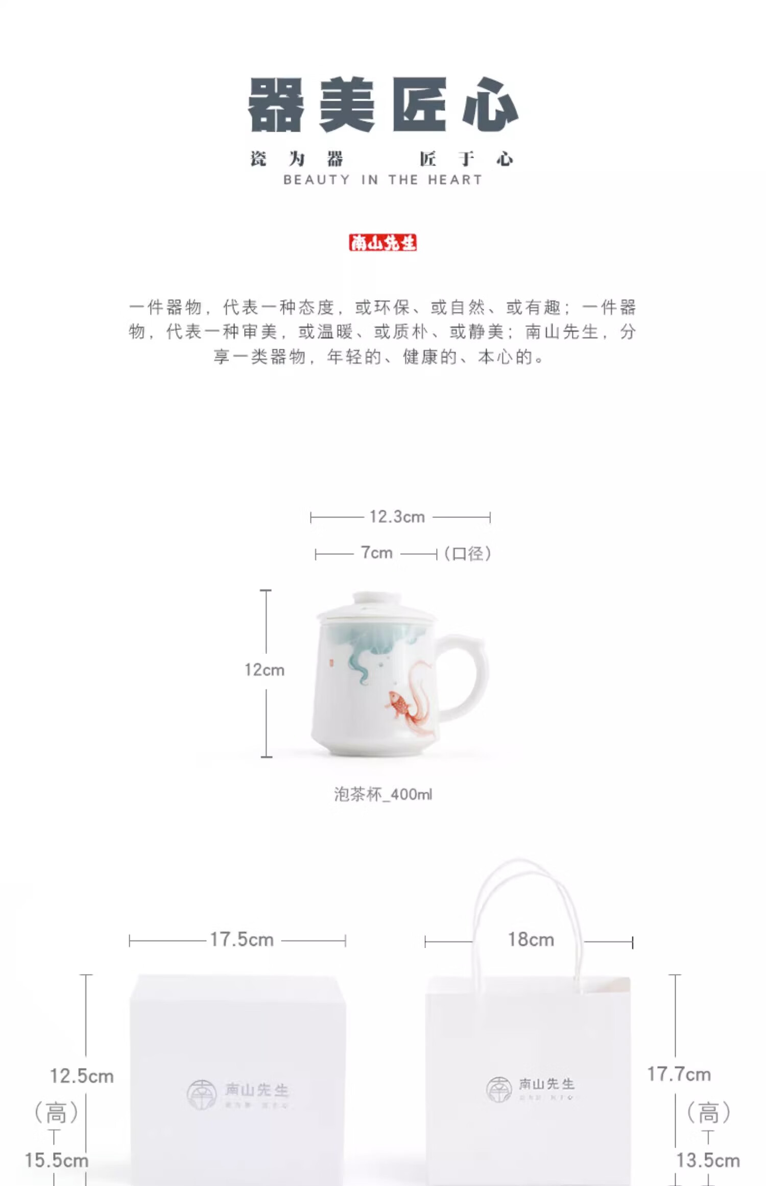 商品名称:南山先生 素锦莲华泡茶杯(百川款)1个 1杯1盖1滤 单位:套