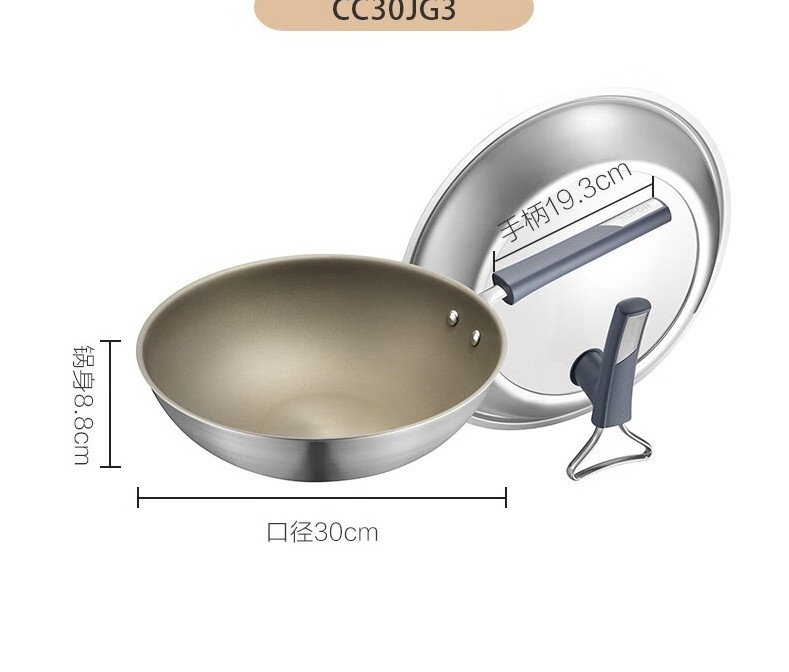 商品名称:苏泊尔(SUPOR)30cm炒锅·有钛无涂层不粘炒锅.2代/CC30JG3(个) 不锈钢色