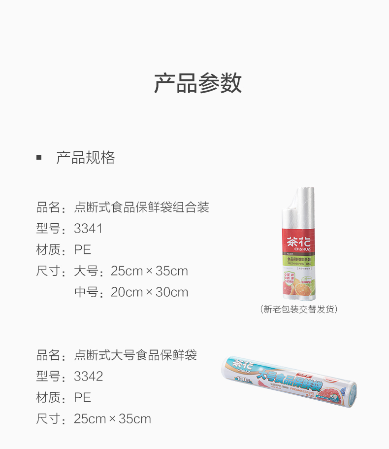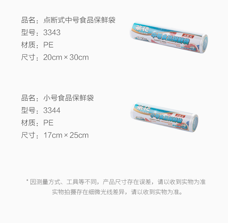 商品名称:茶花优盟世纪点断式中号食品保鲜袋(150只)3343 无色