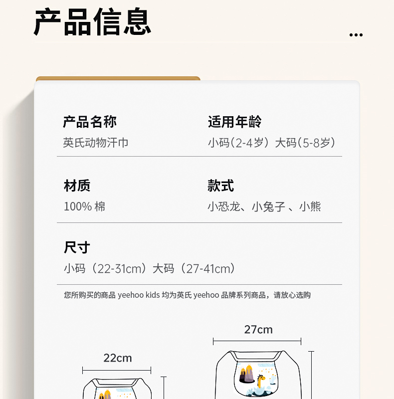 商品名称:英氏动物汗巾 FZ04B 白L 白色
