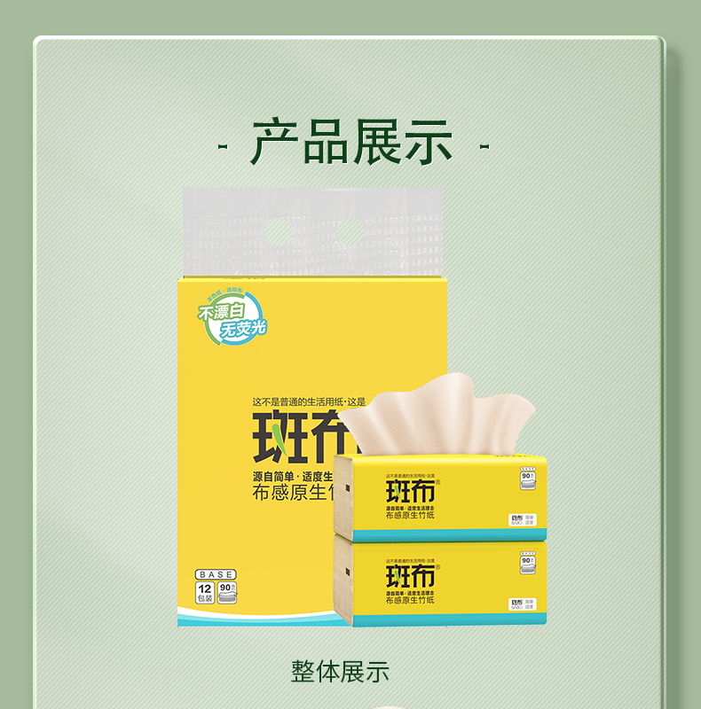 商品名称:斑布(BABO)BASE系列抽纸 原生竹浆本色 3层90抽12包BCR90E12(单位:提) 自然色